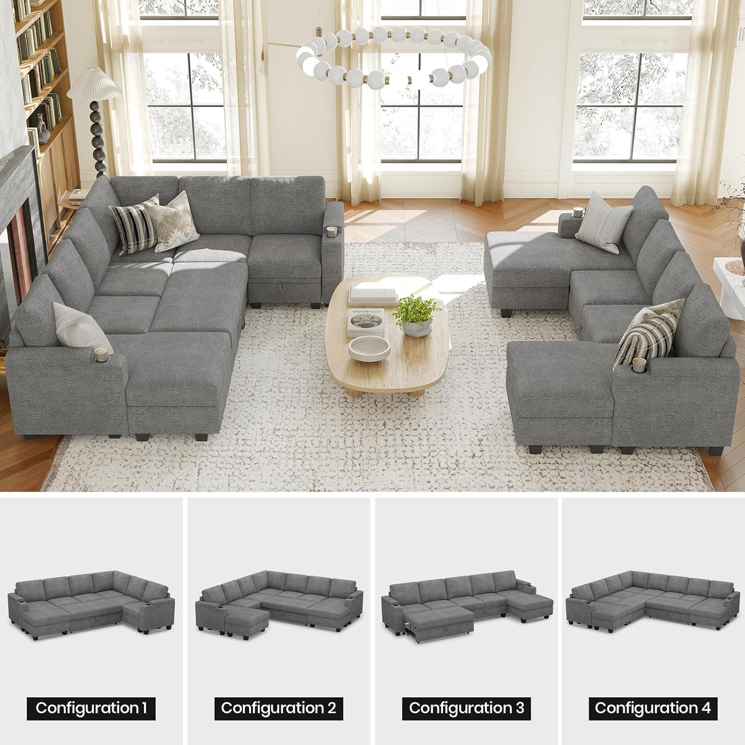 Flexible Combination: Design your ideal living space with our 10-piece modular sectional sofa and fixed left/right arm modules to anchor your design, all in one convenient box. From a small corner couch to an oversized sectional sofa couch, whether you prefer an L shaped couch or a U shaped couch, easily create the perfect arrangement for your home.