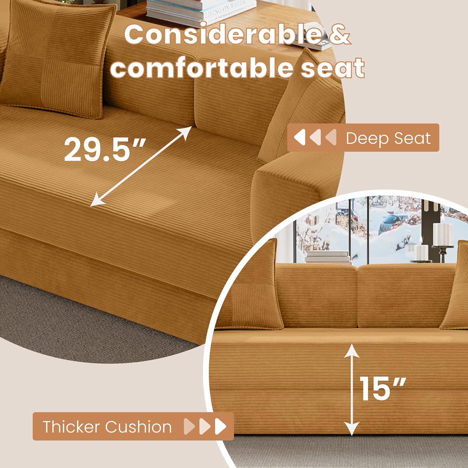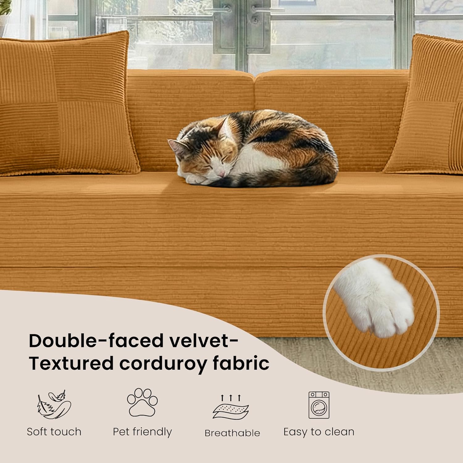 Dreamlike Corduroy Comfort: Sink into a realm of luxury with pet-friendly, breathable corduroy and high-resilience foam that bounces back like a fairy-tale spell. The removable, machine-washable slipcover ensures cloud-like support and effortless care for your enchanted lounging.