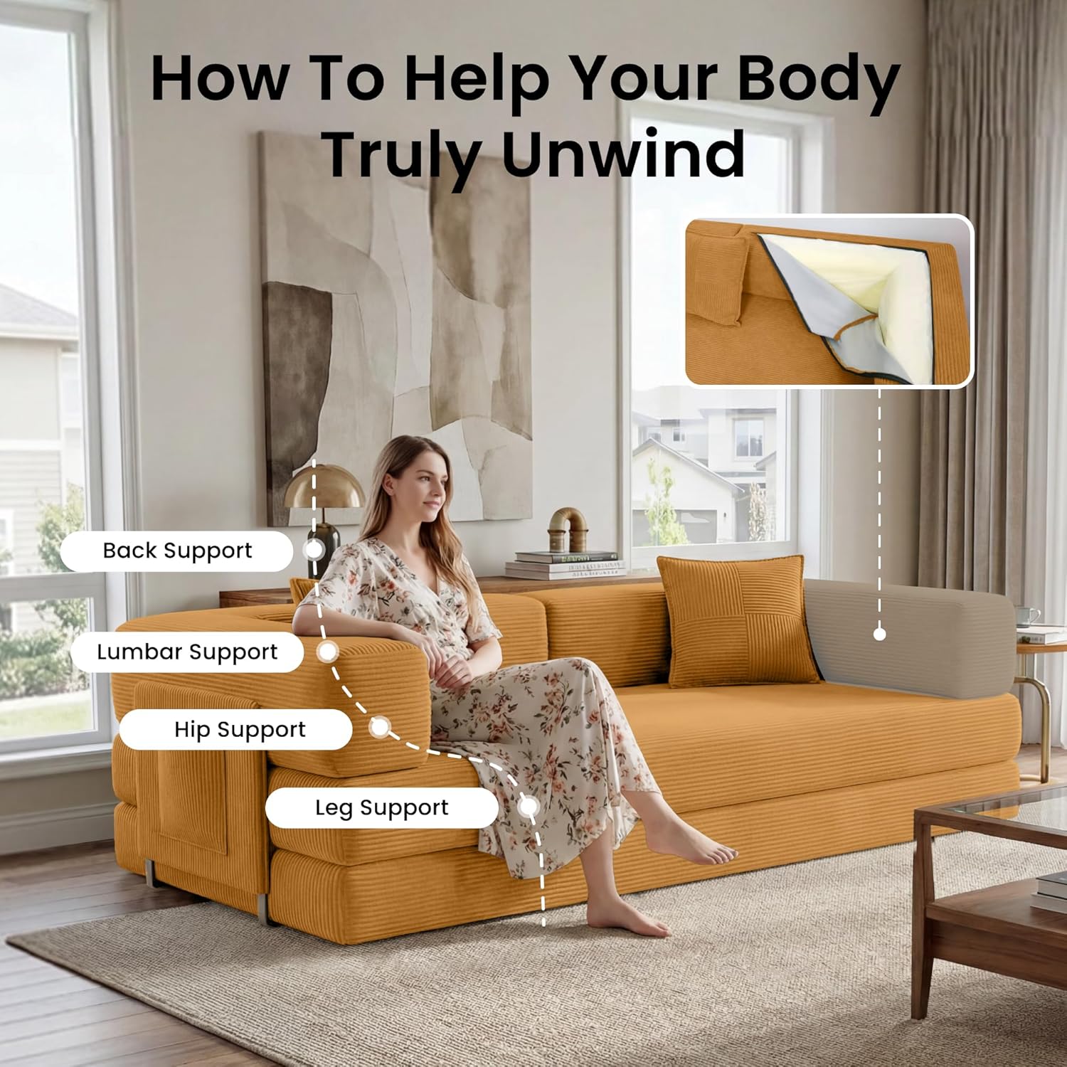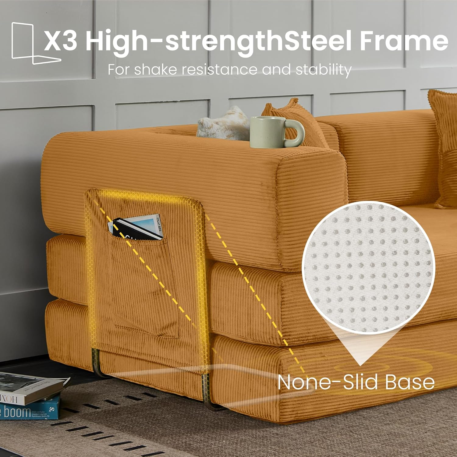 Instant Magic, No Tools Needed: Your space-saving solution unfolds like a fairy tale! This boneless couch arrives compactsimply unbox, unroll, and watch it take shape in under a minute. Your multifunctional futon sofa bed is ready for wonder, with no assembly required.