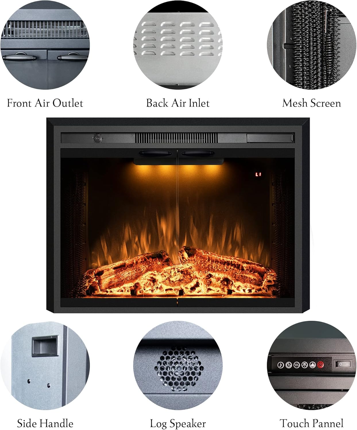 Realistic Flames: Open the two-sided glass door and observe the lifelike flames without hindrance. Whole logs make the flame more atmospheric. And there are three colors of flame & top light: orange, blue, purple. Worth mentioning, the fireplace has a log speaker that simulates the sounds of fire burning.