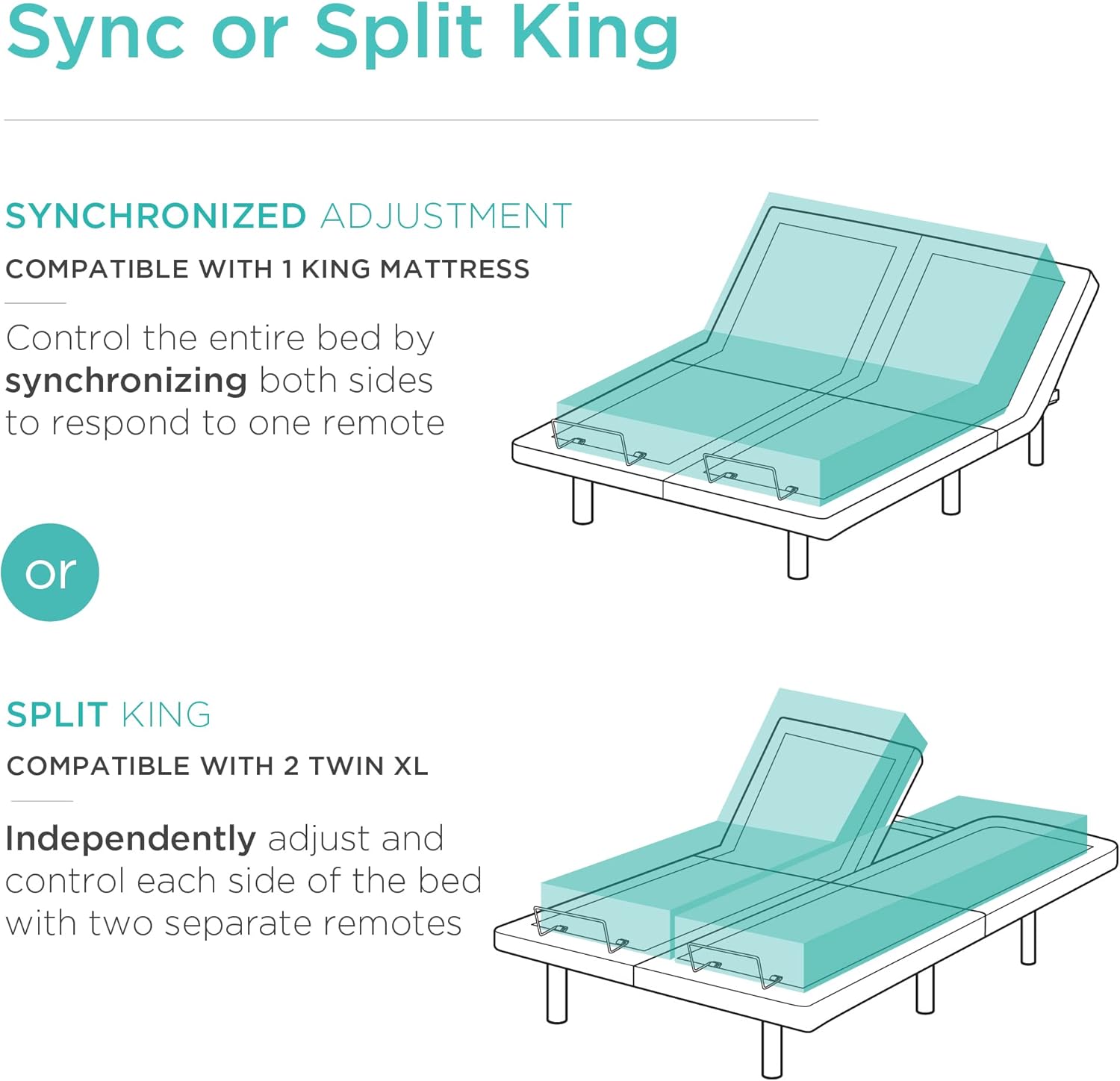 COMPATIBLE WITH VARIOUS MATTRESSES: Complete your optimal bed with the mattress of your choice, this base is compatible with memory foam, gel foam, latex foam, and hybrid mattresses; OVERALL DIMENSIONS: 80"(L) x 76"(W) x 14.25"(H); Weight Capacity: 750 lbs.; Items contained in 2 separate boxes. Transportation times may vary per box.