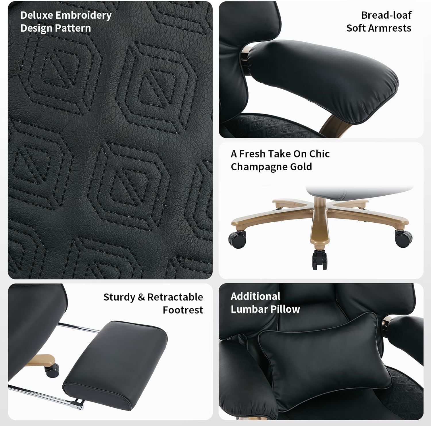 Deluxe & Durable PU Leather: office desk chair use the PU leather which is more durable and skin-friendly, suitable for long term use. The backrest and seat cushion feature a deluxe embroidery pattern design, our executive office chair look is more beautiful ,perfectly complementing your home office and room