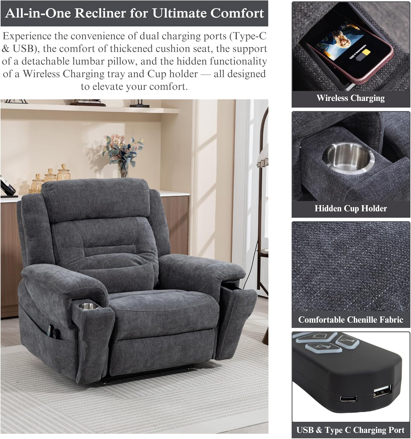 USB & Type C Charging Ports - Stay connected with built-in USB & Type C charging ports, conveniently integrated into the position remote. Charge your devices without ever leaving your seat, making it easy to keep your phone, tablet, or other devices powered up while you relax