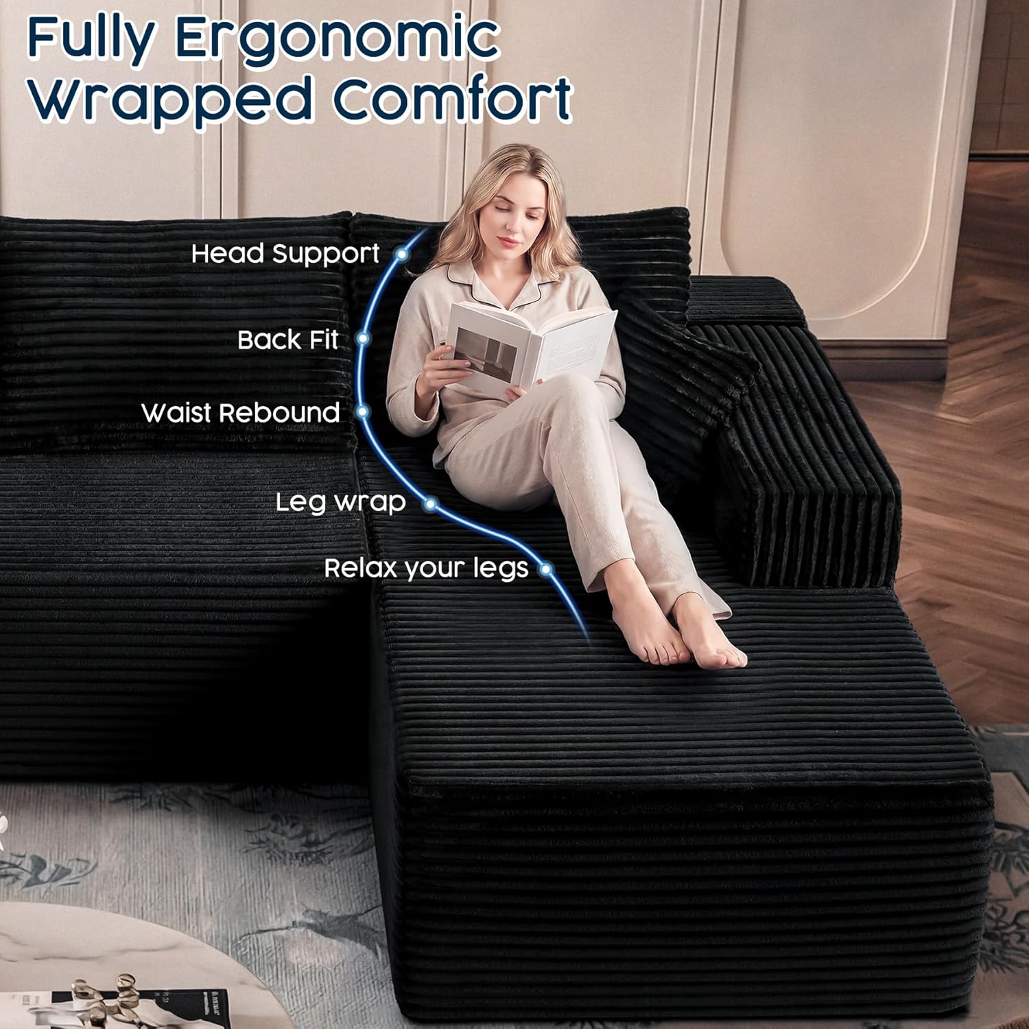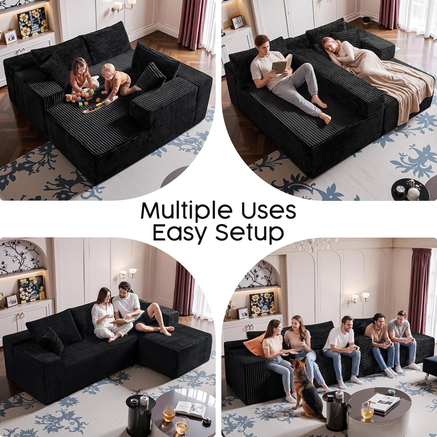 Spacious & Modular: As a 5-seater sectional couch, its 108-inch frame provides ample room for family and guests. The modular sectional sofa design allows flexible configurations to fit any layout.