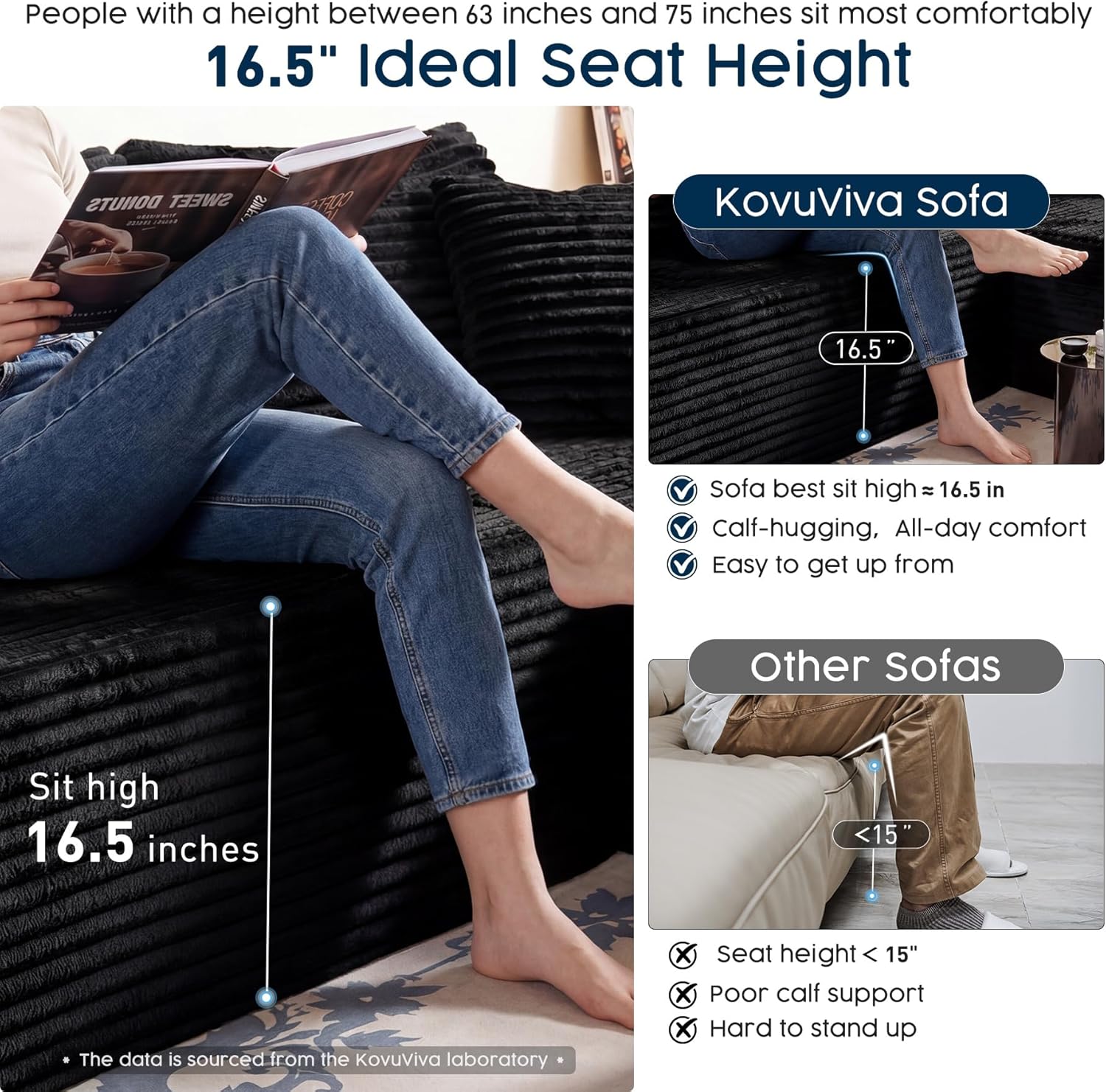 Versatile Style: Whether you need couches for living room gatherings, a sofa para sala modernos, or a cozy couch for bedrooms, this black modern couch adapts seamlessly. Its black sofas for living room aesthetic pairs with any decor.