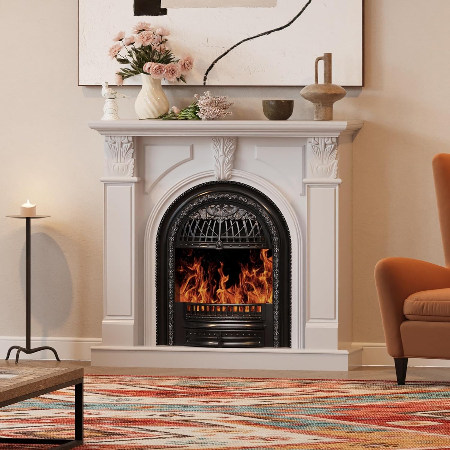Unique Birdcage Firebox with 3 Flame Effects - The black birdcage insert of this eletric fireplace with mantel creates realistic flickering flames in 3 modes. Control all functions via remote: 22 temperature settings (62F-82F), 2 heat levels (1400W/750W), and 6-hour timer. Experience cozy ambiance without messy real fire.