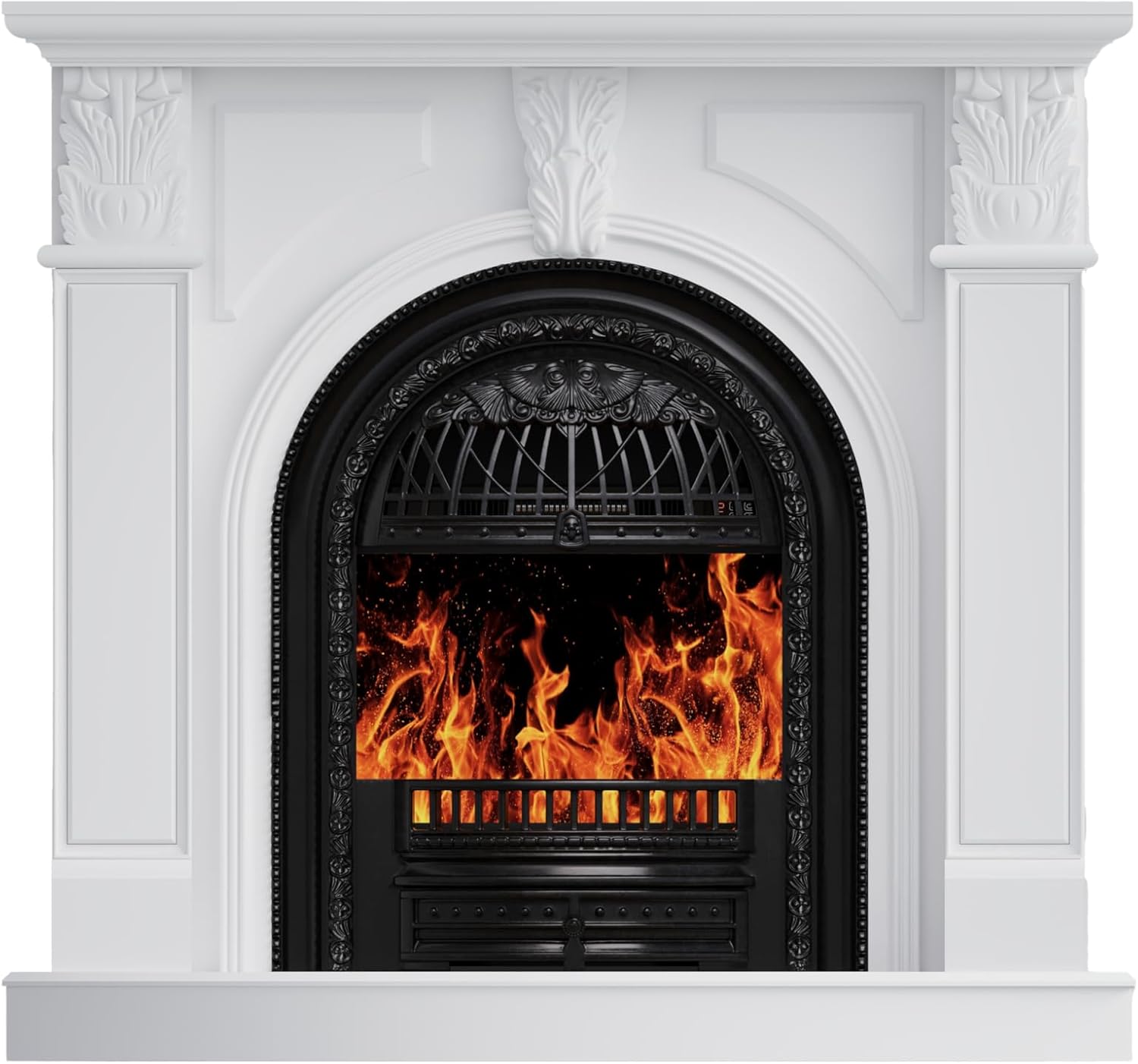 Elegant Craftsmanship with Premium Material - Made with high-quality engineered composite wood, this fireplace tv stand with white mantel features intricate classical carvings and square column design, adding European sophistication to your living space.
