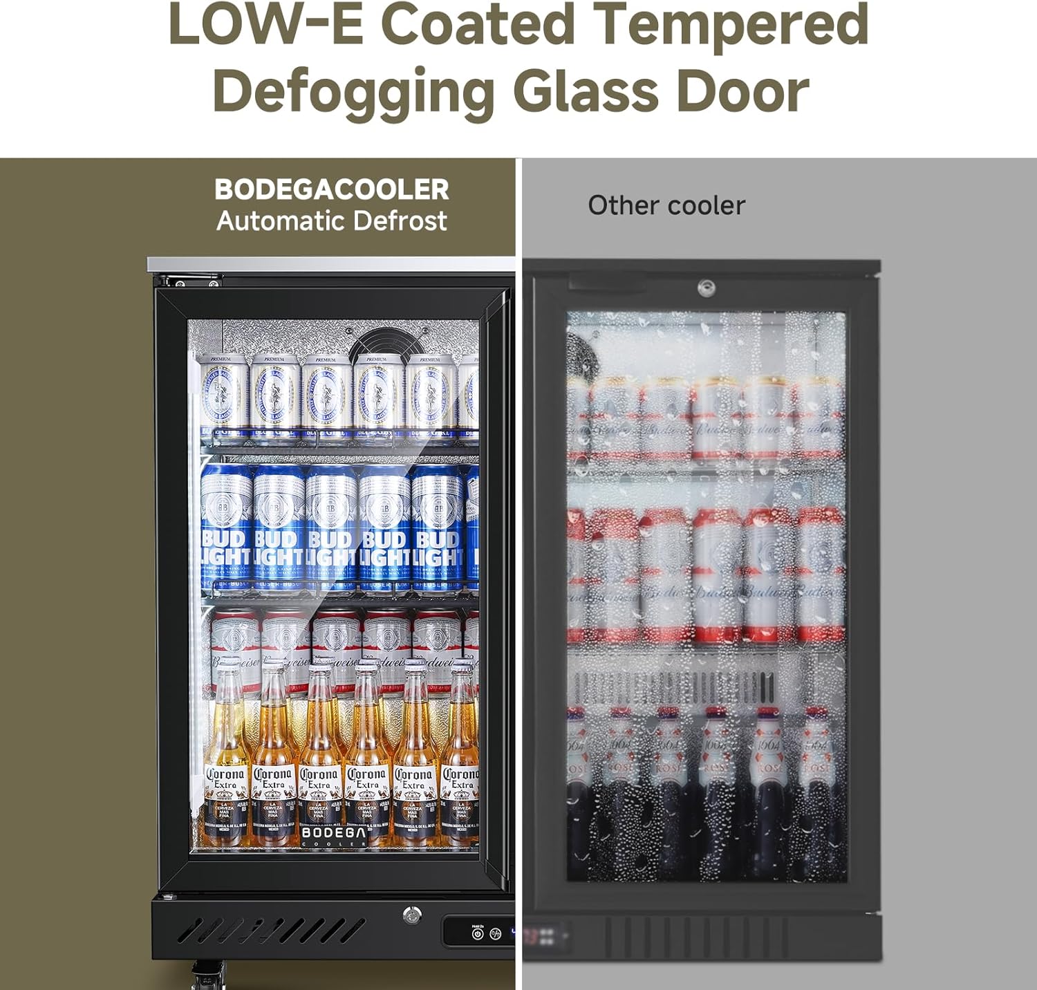 [Fast & Efficient Cooling] COOLER back bar cooler is engineered with a powerful forced-air refrigeration system and natural R290 refrigerant with an auto-defrost function that provides cold,even temperatures throughout the interior,always keeping your beverages,drinks cold. Equipped with a smart touch controller that precisely controls the internal temperature within a range of 0C ~ 10C (32 - 50) .A wide range for soon cooling of beers in 1 hour.Automatic defrost system make sure drinks bottle seen through clear glass door.very attractive in varieties of commercial occasions like nightclubs,bar,dinner party.