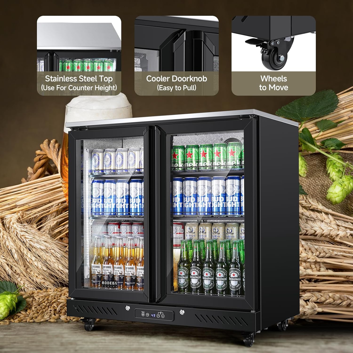 [High-quality Durable Construction Beverage Drink Refrigerator] The double doors of COOLER bar cooler fridge is redound to save time during commercial drinking serving rush,also come with safety locks to protect valuable beer collection or wine.This 2-door bar fridge have been certified by ETL,DOE. Please feel free to contact COOLER if you have any problems before or after buying.within 30 days any issue contact us and we'll respond soon with refund or replacement.1-year warranty for refrigeration or more cooler problems.