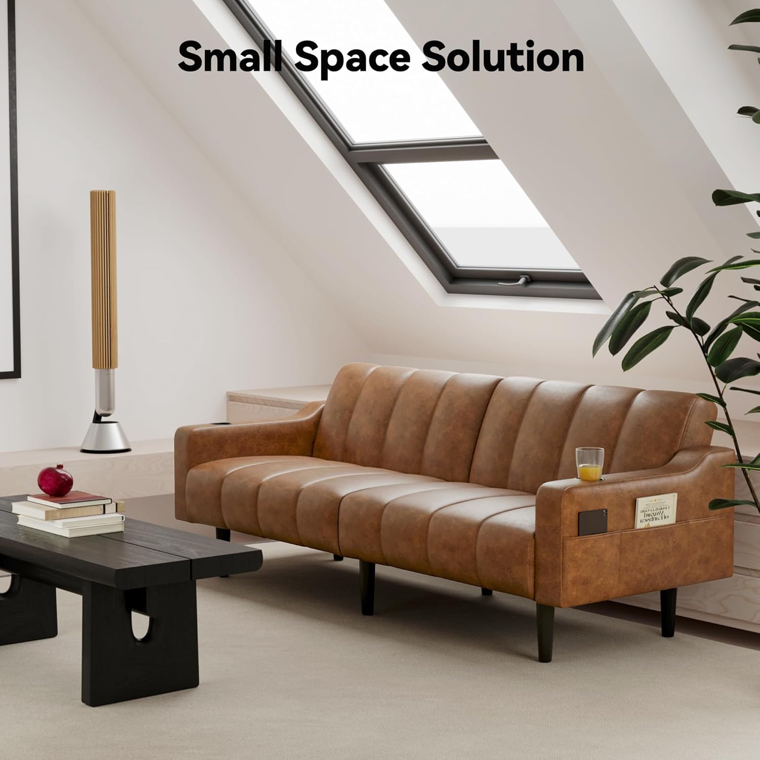 Built-to-Last Durability & Easy Assembly: Engineered with sturdy tapered legs, hidden support, dense sponge padding, and a spring coil system, this faux leather couch resists sagging. Two people can assemble it in just 20 minutes with included tools