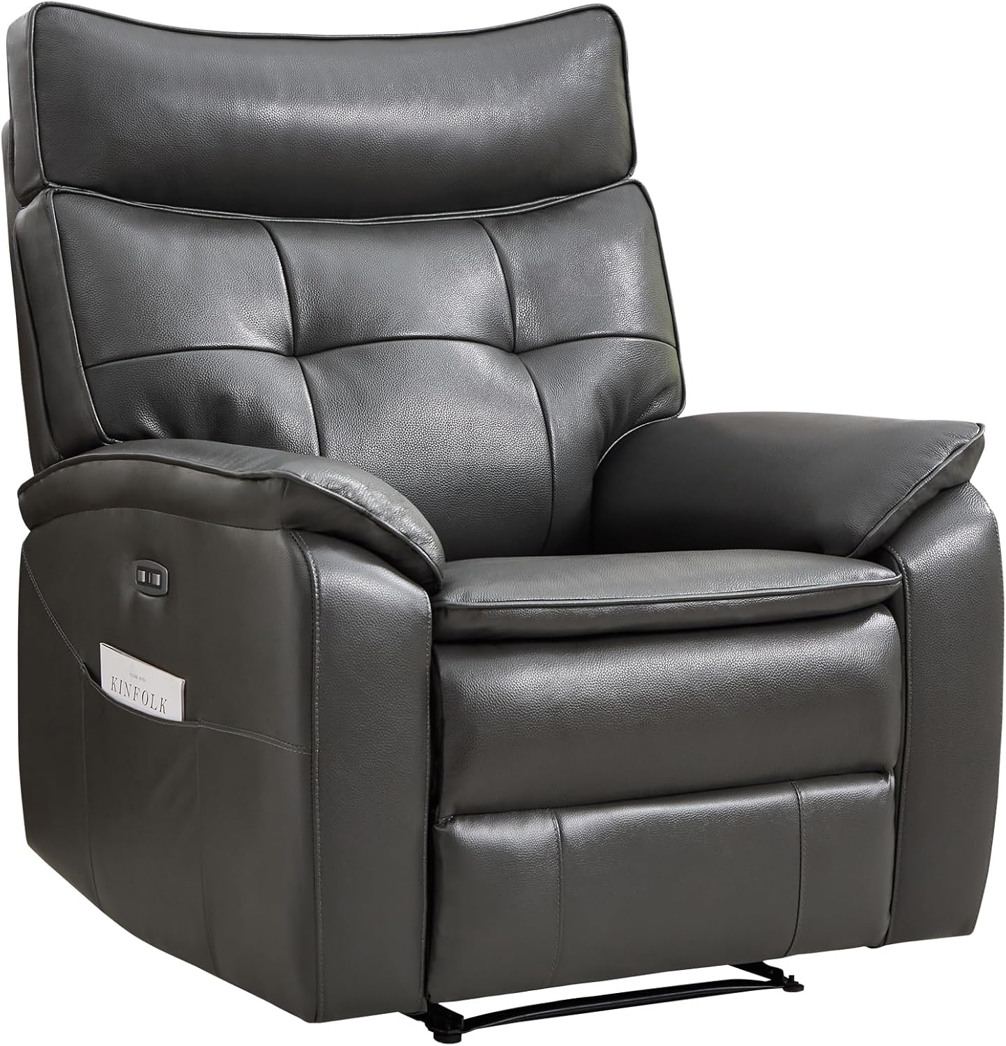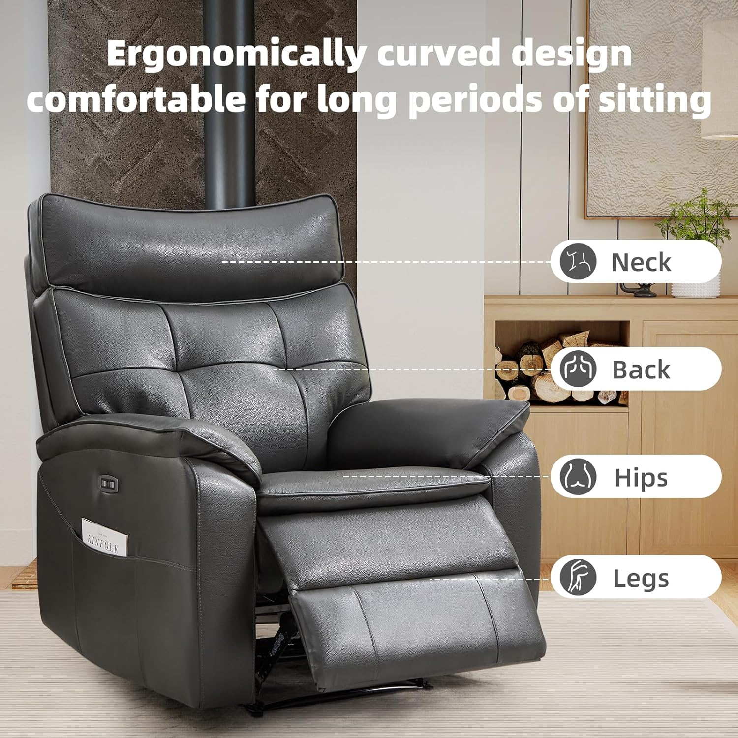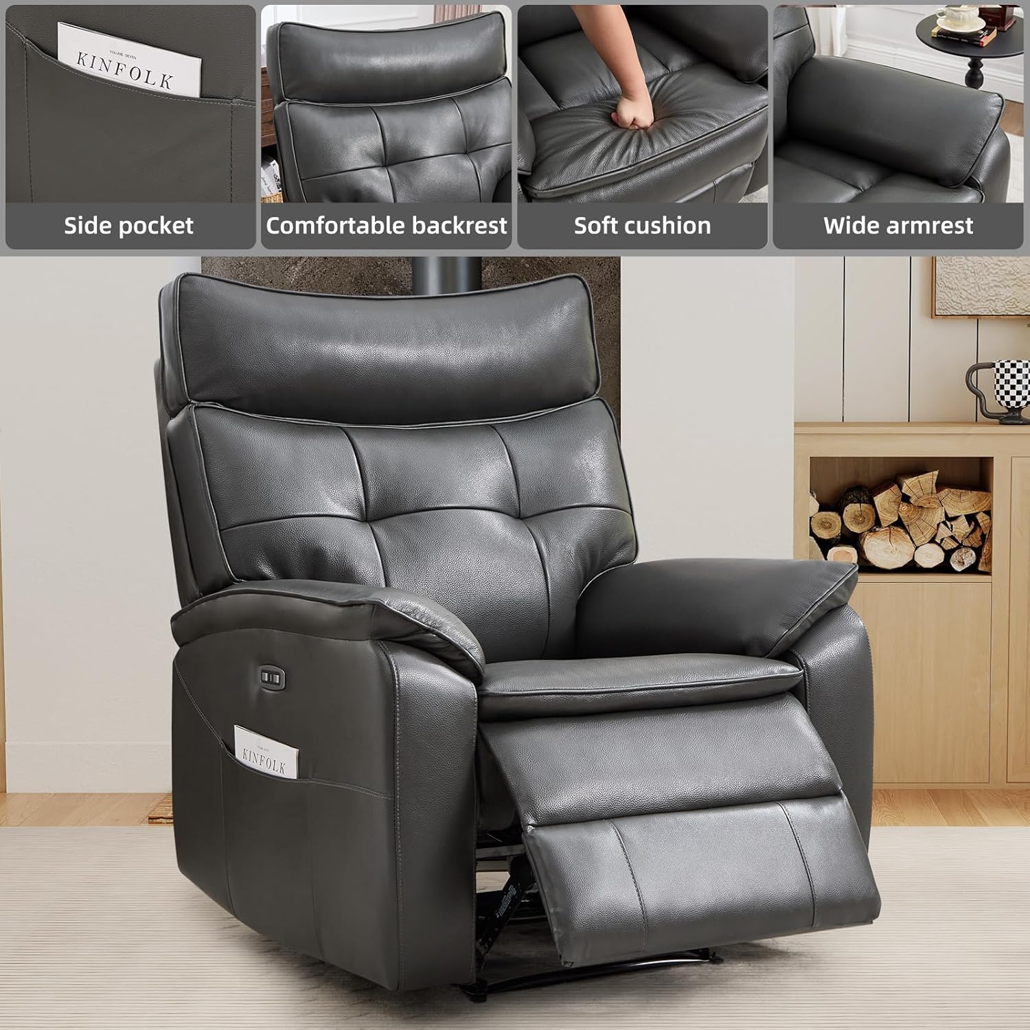 Leather Recliner Chair: Crafted with premium genuine leather upholstery, every touchable surface is wrapped in genuine leather, offering a luxurious soft feel and breathability. Cleaning and maintenance are effortlesssimply wipe with a slightly damp cloth to keep it looking like new.