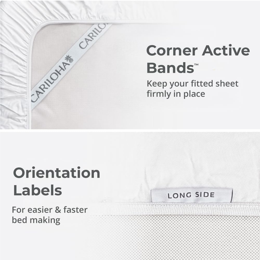Convenient Features for a Perfect Fit: Equipped with Corner Active Bands and Perfect Bed Border, the fitted sheet stays securely in place. Fitted sheet orientation labels make bed-making easy and hassle-free.
