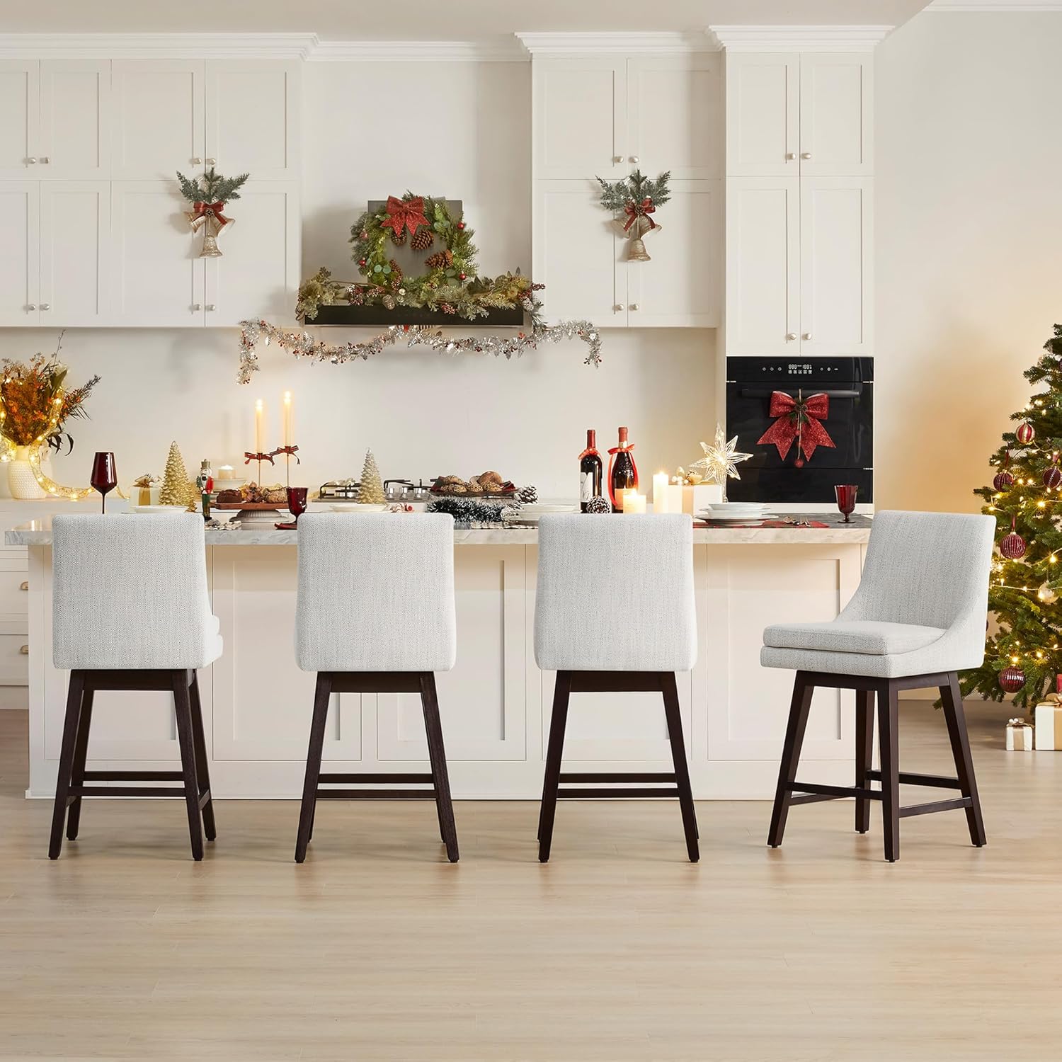 • Bar Stools Set of 2, Counter Height Swivel Barstools, FSC Certified Morden Upholstered Fabric Counter Chairs with Back Support, 26.8" H Seat Height, Fabric in Ivory