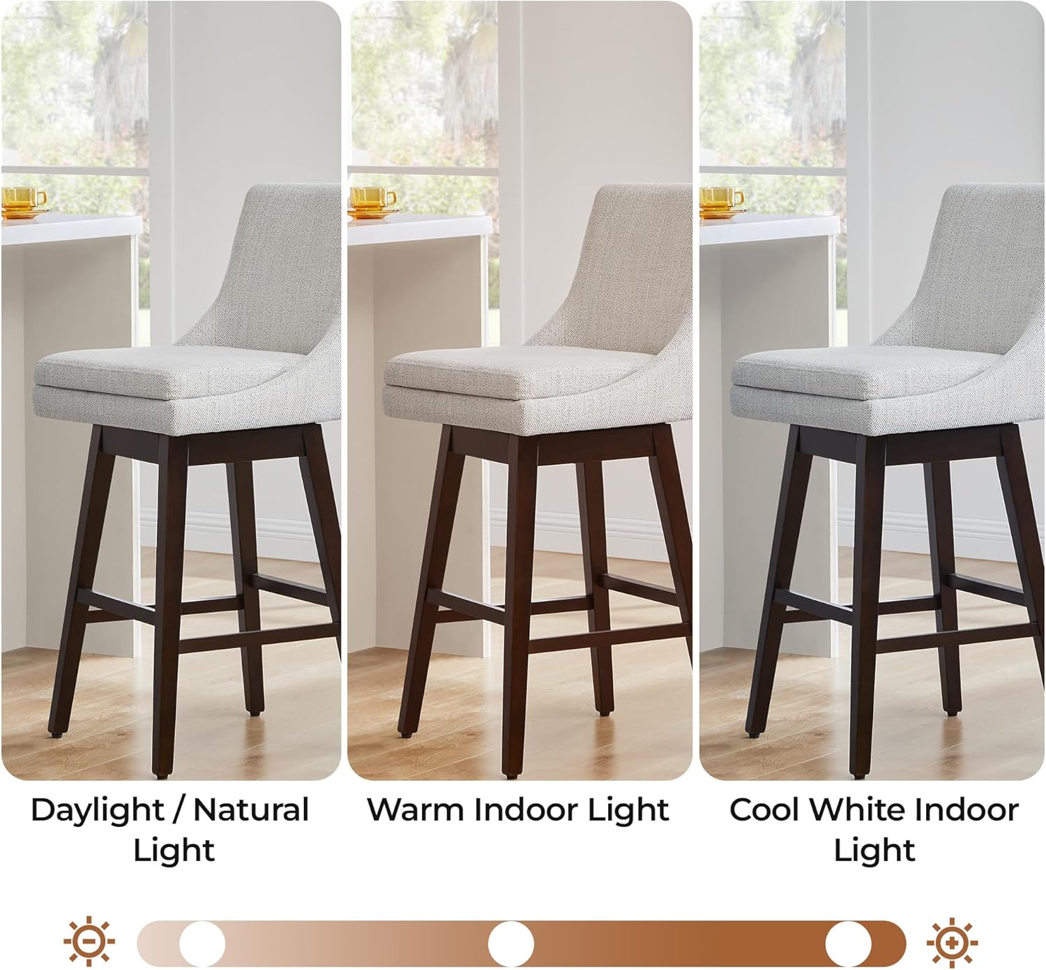 360-Degree Swivel Barstool: stylish and comfortable barstool is perfect for high-top tables and counter. With its seamless 360-degree swivel, you can effortlessly rotate the seat with your body's movement. No need to move the entire chair when standing up.