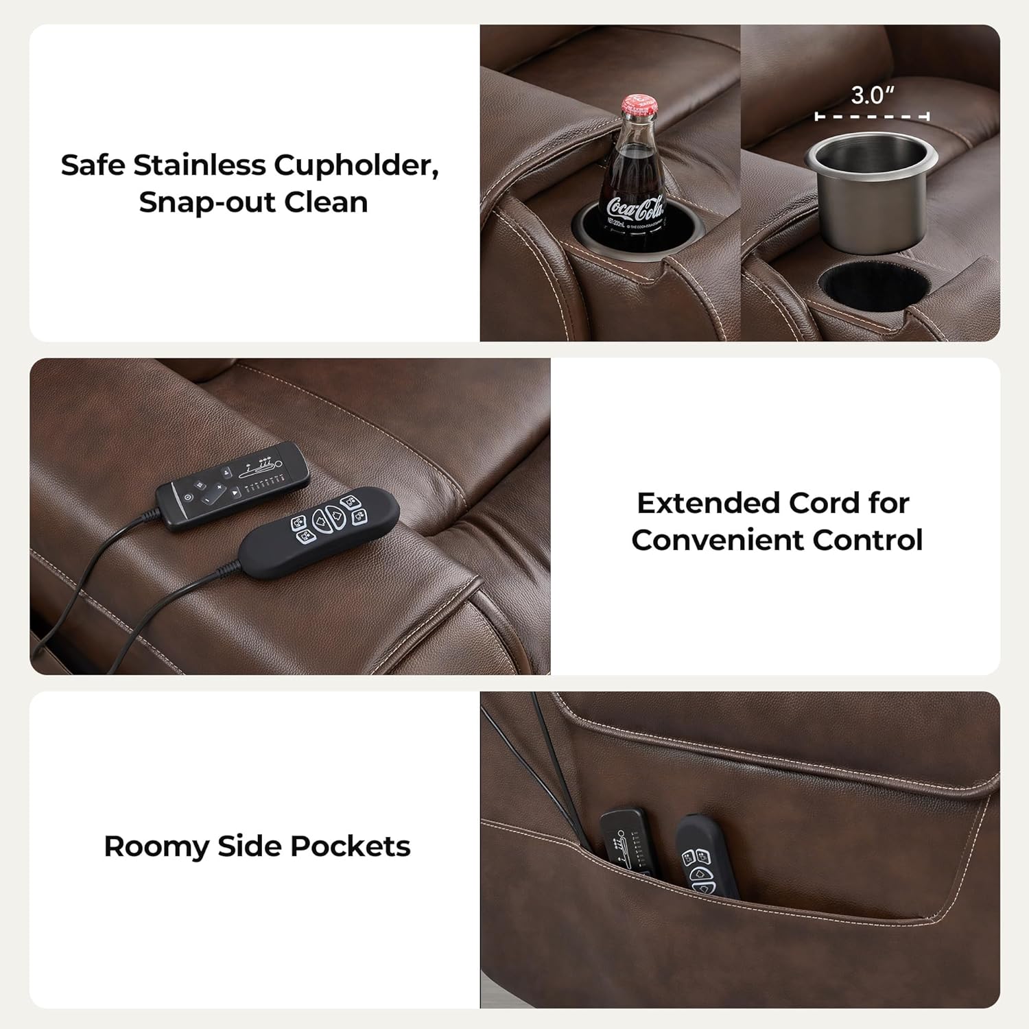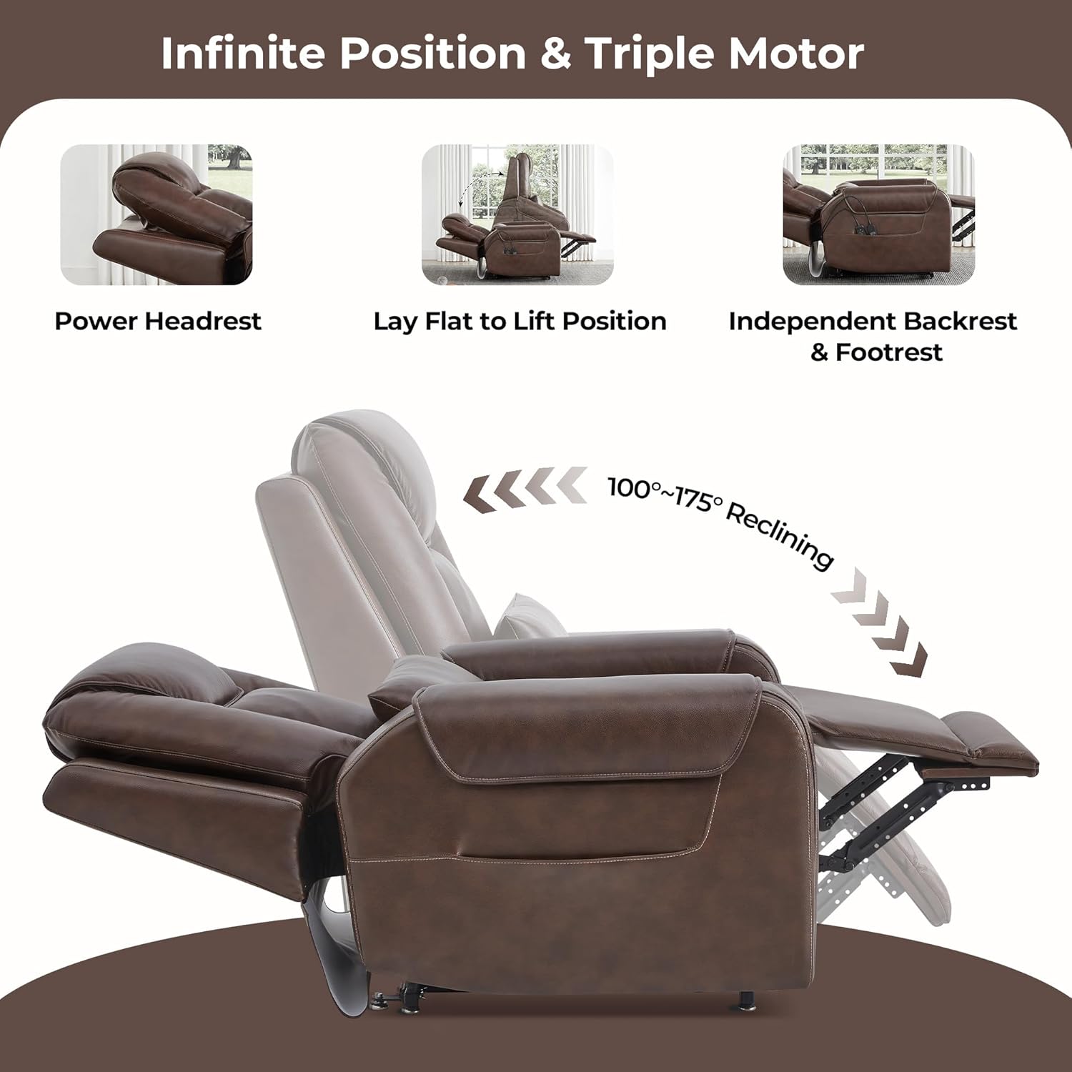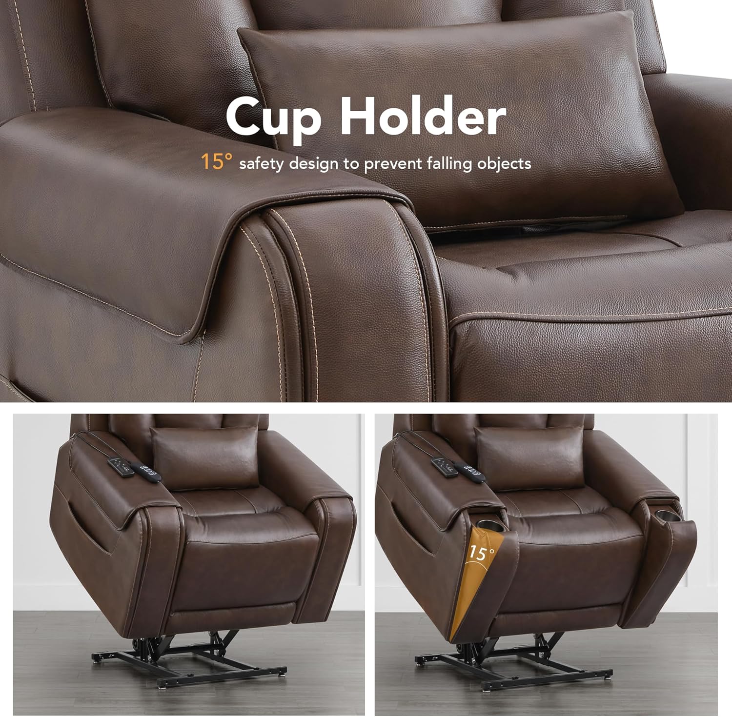 • Electric Power Lift Recliner Chair for Elderly with Massage and Heat, Large Lay Flat Genuine Leather Recliner Chair with Cup Holders, USB Ports, Power Headrest, Independent Backrest, Dark Brown