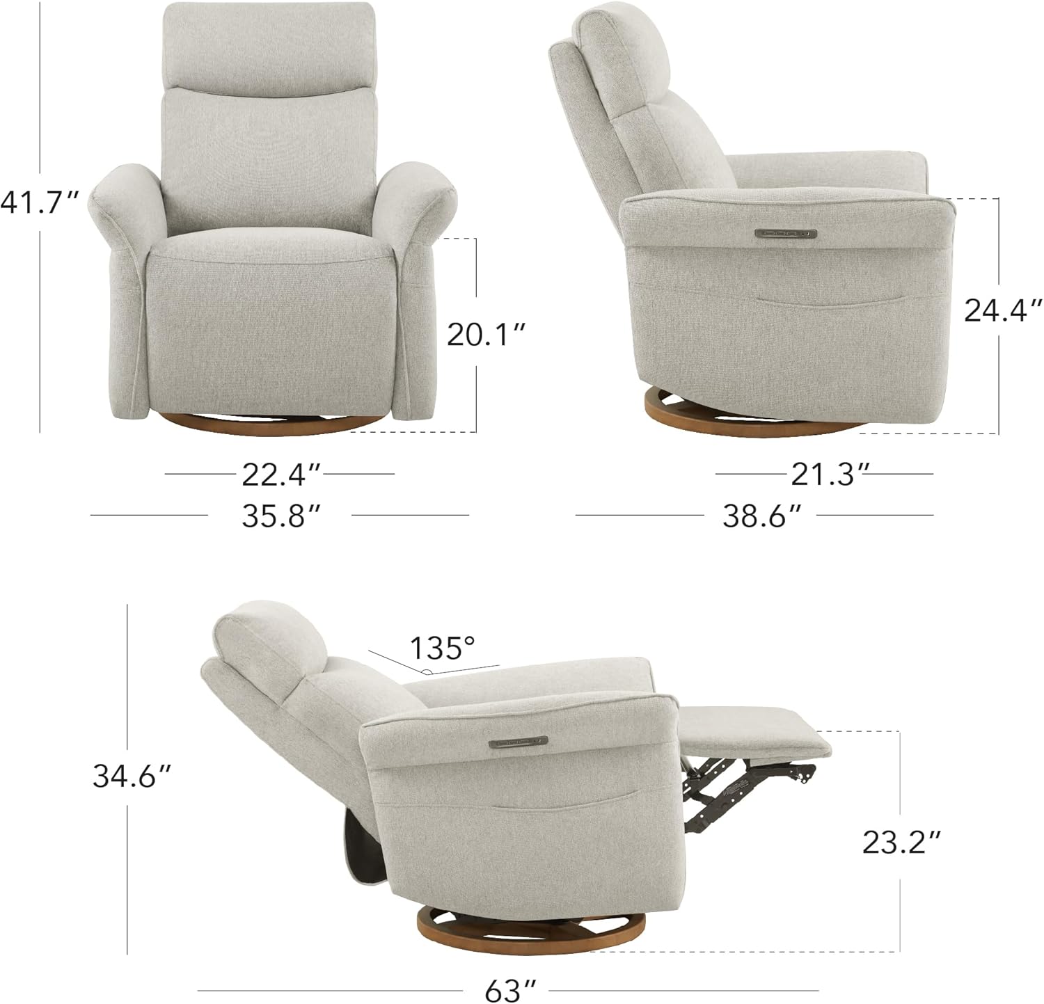 The Power Recliner Chair can recline to a 135 degree angle.