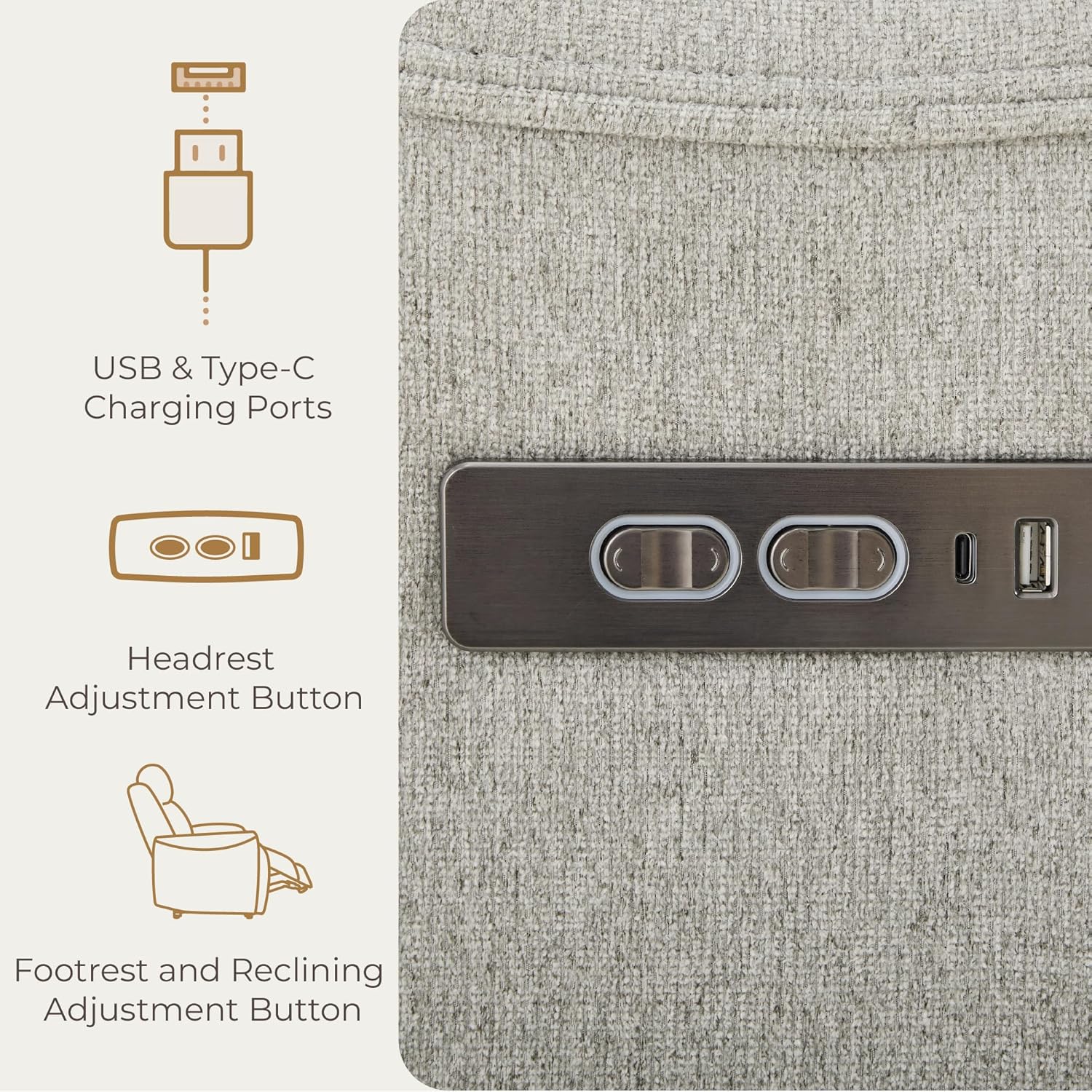 Premium Dual-Motor Control - Seamlessly adjust your comfort with the dual-motor control system. The footrest and backrest move together with a single button, while the headrest adjusts independently. The backrest only reclines after the footrest is extended, allowing the seat surface to adjust from 90 to 135 in a stepless manner. This versatile design accommodates nursing, TV viewing, napping, and reading with ease. The electric headrest provides customized support for ultimate relaxation.