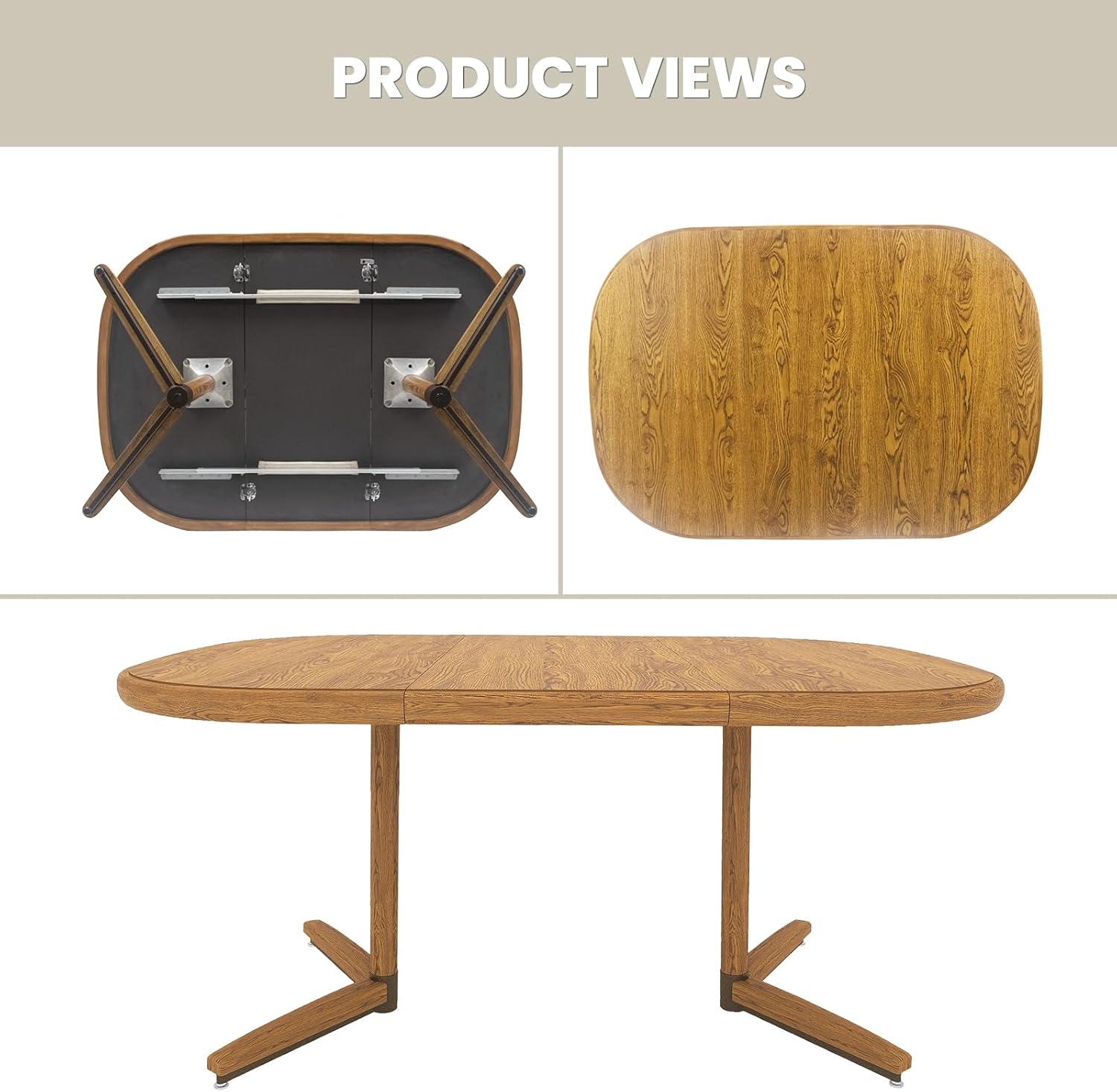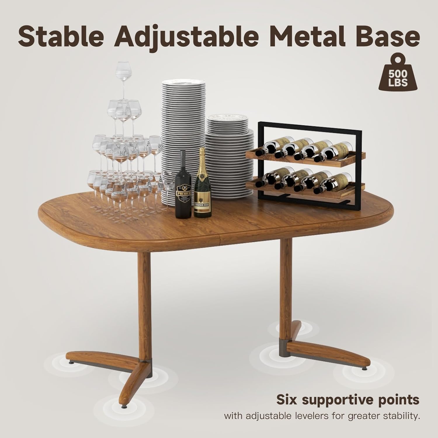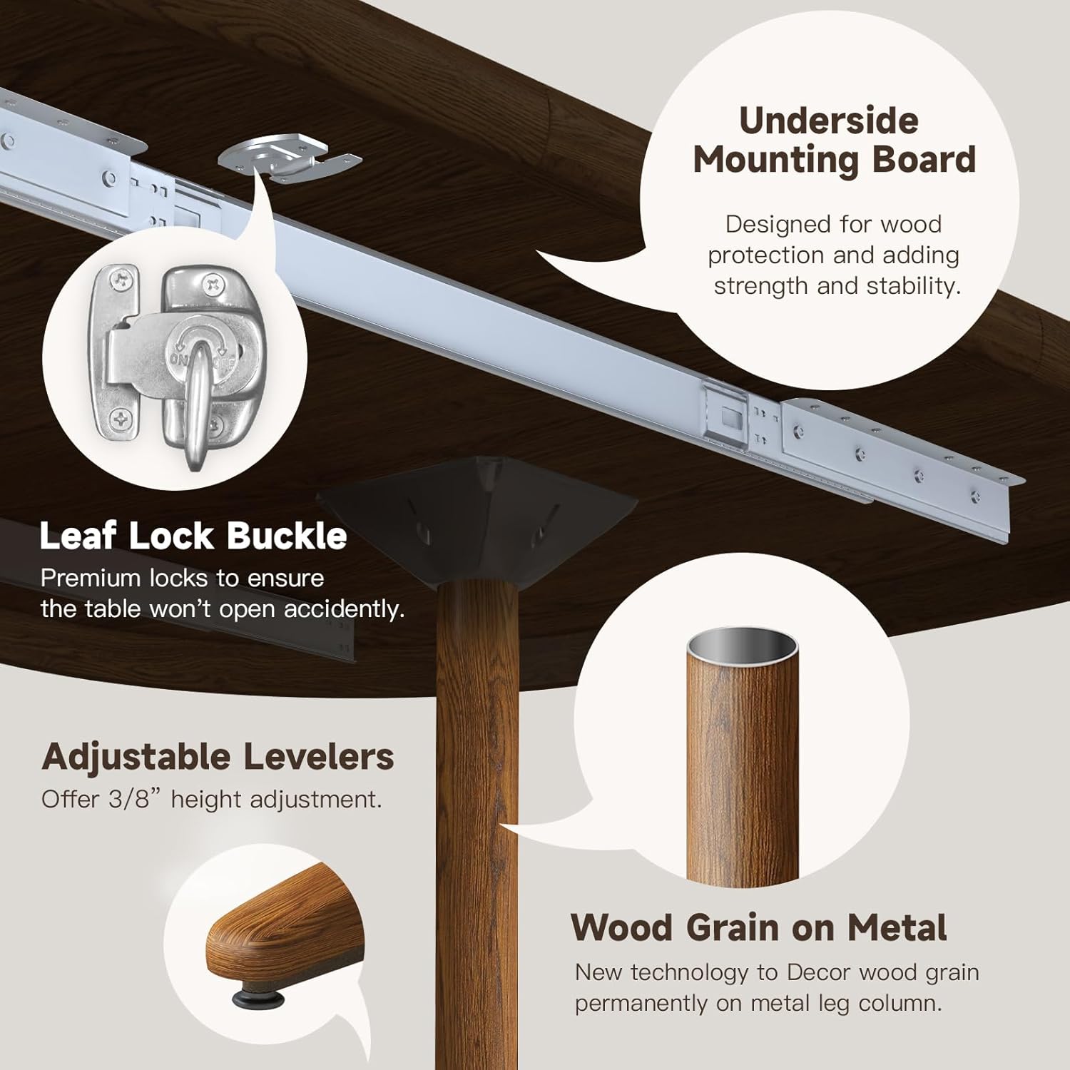 Finest MaterialThis 's kitchen dining table is crafted from high density particleboard,which is durable and resistance to wear. The table's metal columns utilize new technology to Dcor the wood grain permanently on them. This innovative approach sets it apart from common methods like wrapping PVC on the metal tube, reducing the likelihood of scratches and wrinkles.