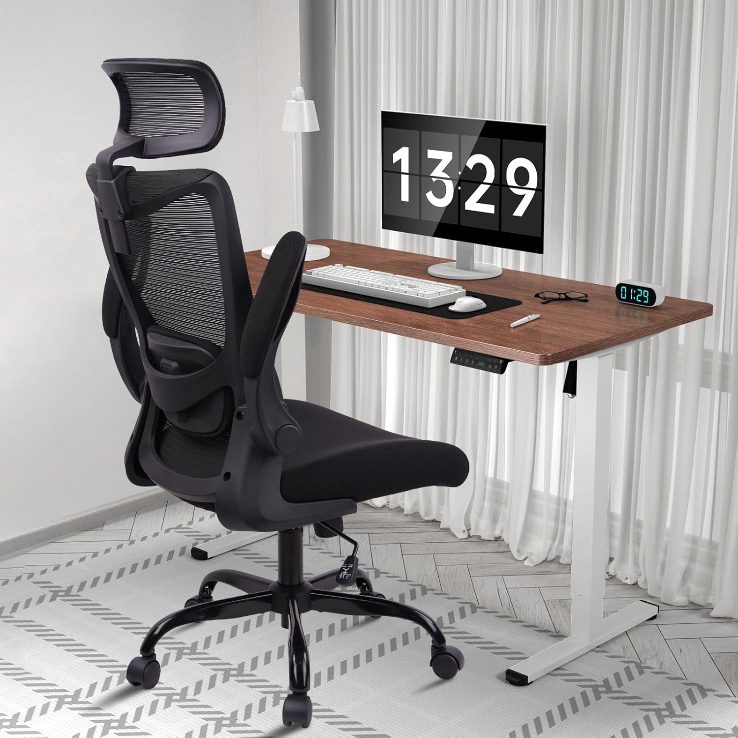 Breathable & Space-Saving DesignThe conference chair breathable mesh backrest enhances airflow, keeping you cool and sweat-free even during long meetings. A thick, high-density foam ergonomic desk chair cushion adds all-day comfort. Flip-up padded arms chair let you easily slide the rolling chair under your desk, maximizing space in your home or office.
