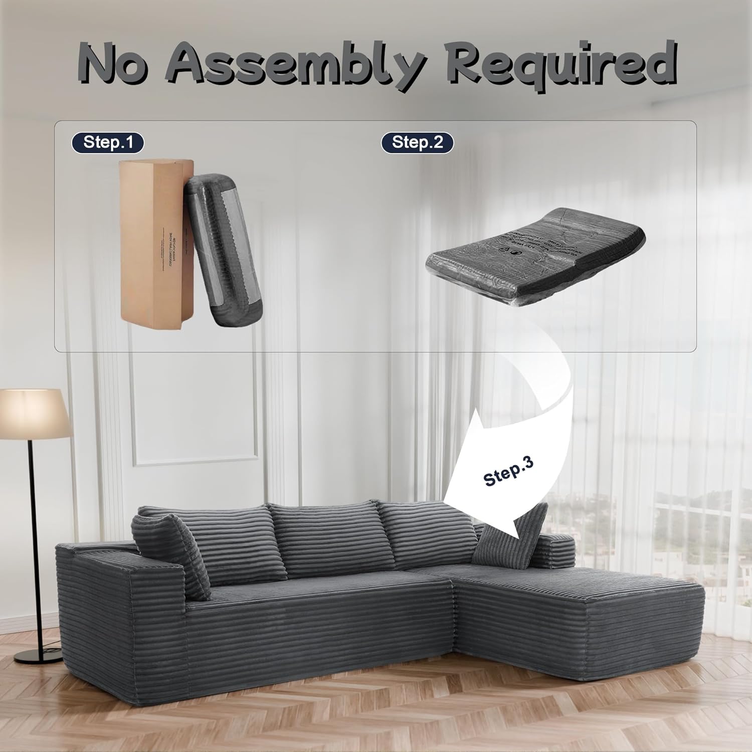 No Assembly Required: Say goodbye to assembly stress. Just open all the parts and gently tap each section to enhance its elasticity, allowing the sofa to return to its perfect shape within 48 hours.Enjoy a no-tools, no-hassle experience from the start.