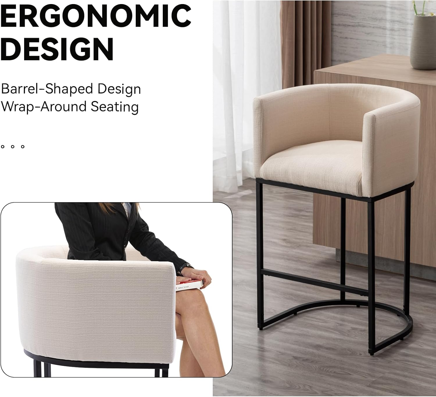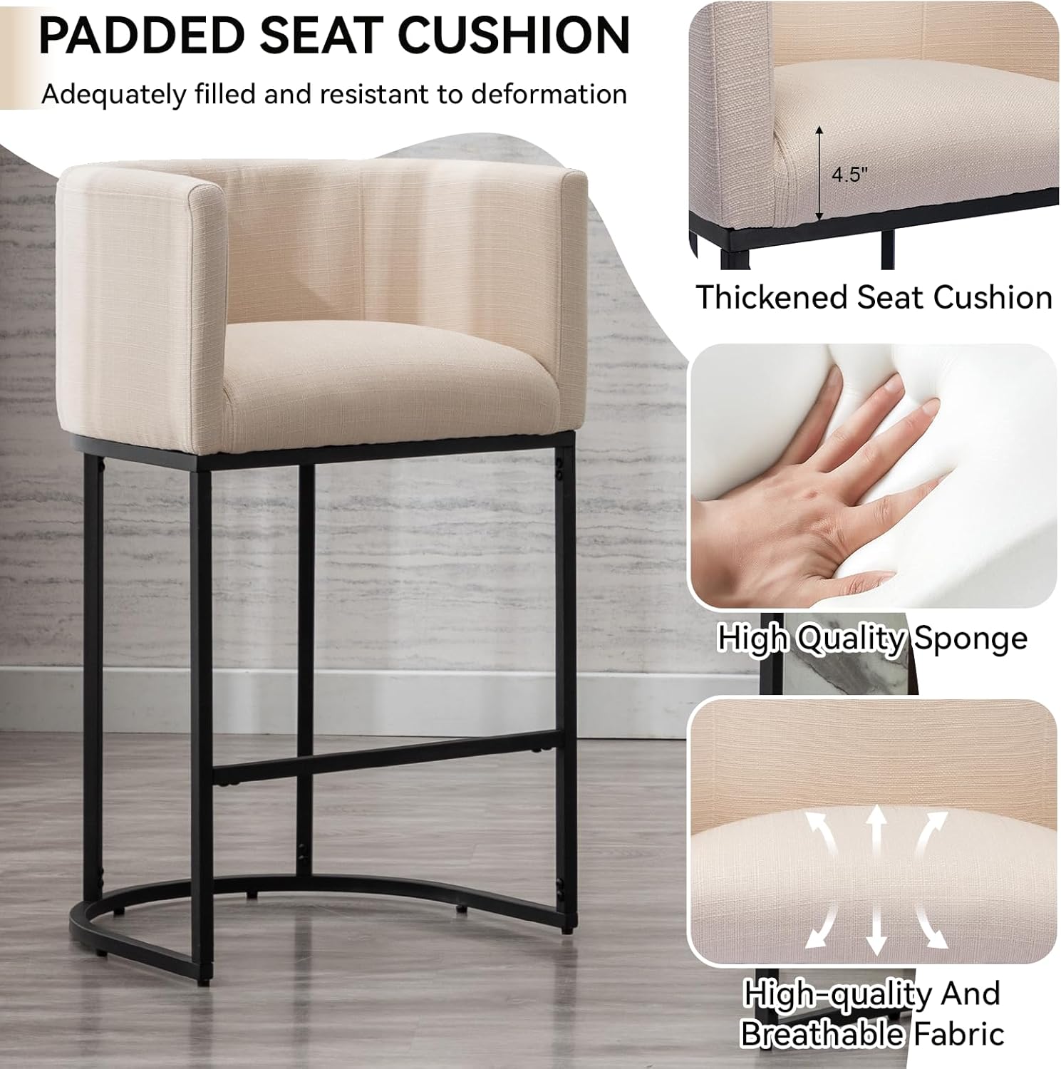 • Contemporary Cream Linen Bar Stools Set of 3, 29" Upholstered Fabric Counter Height Barstools Kitchen Counter Island Stools with Black Metal Base