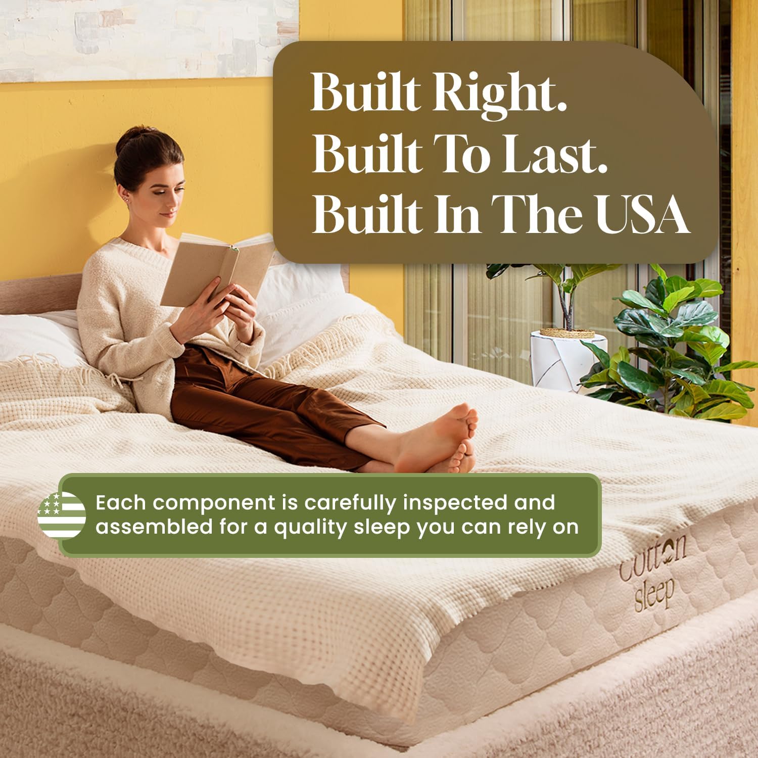 CottonSleep All Natural Mattress (100% Organic Cotton, Wool, & GOTS Latex, Made in The USA) Non Toxic, Fiberglass Free Hybrid Pocket Coil and Plush Foam Bed in A Box Medium Soft - Twin XL, 11"