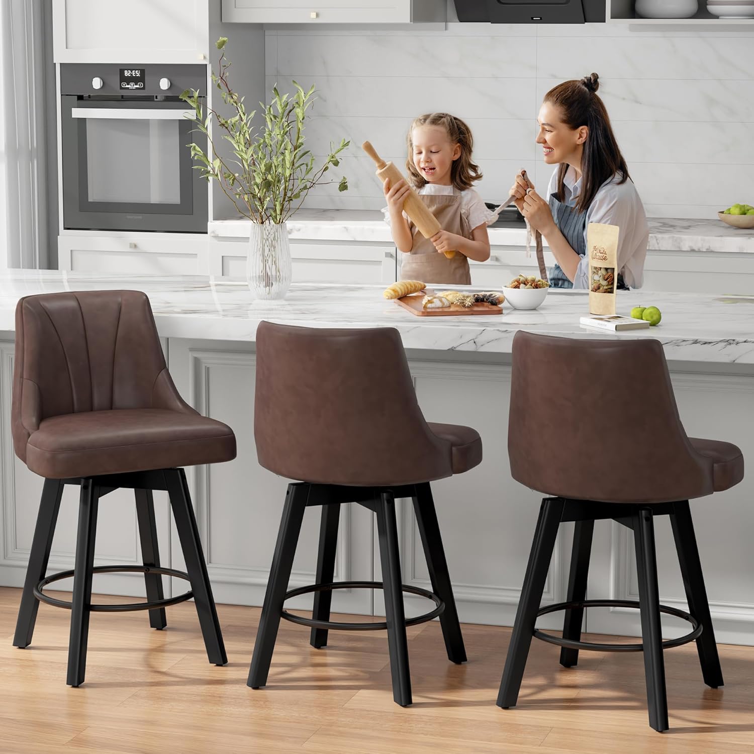 Assemble Easily: Our swivel barstools are designed for easy assembly, with detailed instructions and all necessary hardware and tools included. If you have any questions or need additional support, please feel free to contact us, our customer support team is here to help.
