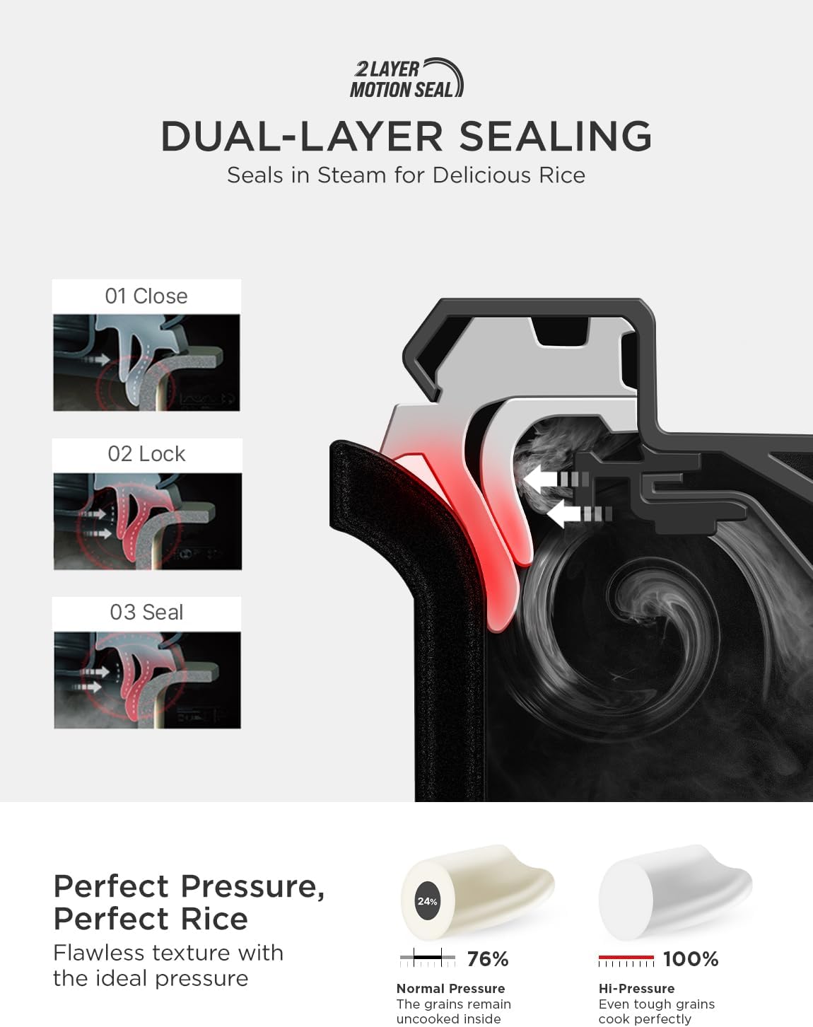 High Pressure Level: Boasts one of the highest pressure levels in the industry at 29 PSI (200 KPa), enabling faster rice cooking than ever before