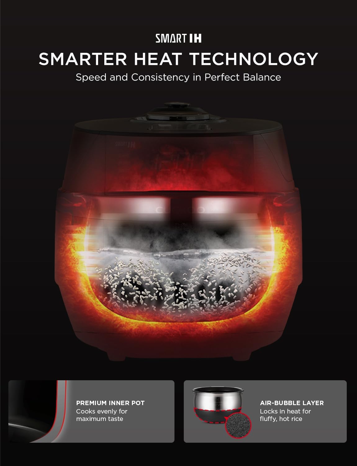 Induction Heating: Induction technology heating surrounds the inner pot, making cooking quicker and more efficient