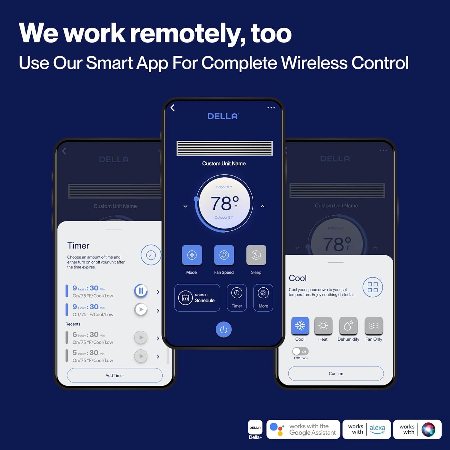 Smart Control: Supports the App and Alexa for remote temperature control, and includes both a Thermostat and remote. With geolocation functionality, the system can start before you arrive, ensuring a comfortable indoor environment with a seamless, smart control experience.