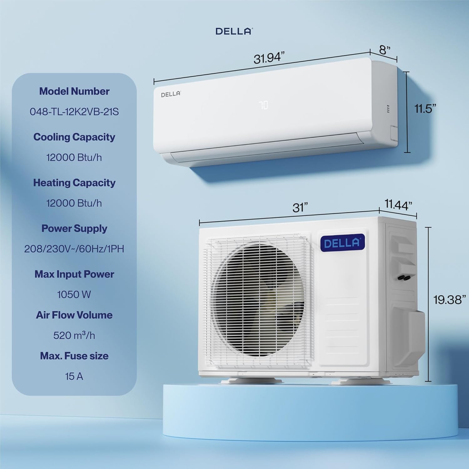 [AUTOMATIC SYSTEM] This air conditioner is designed with several smart settings that make it easy to use: auto defrost, self-diagnosis/cleaning, I feel mode, dehumidifying, 24 hour timer, sleep mode, eco energy saving mode, multiple fan speeds and intelligent compressor pre-heating. Maximum Fuse Size is 15A.