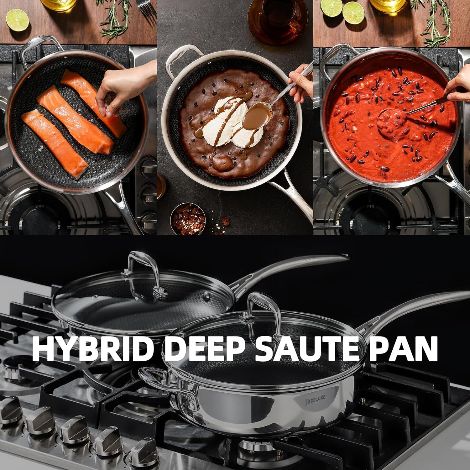 This 13 Pieces Hybrid Nonstick Cookware Set Includes: 1.3, 3&5.4-Quart Pot with lids,8Inch fry pan/no lid ; 10,12 Inch fry pan/with lids ,3.7QT Deep Saut Pan&Lid.