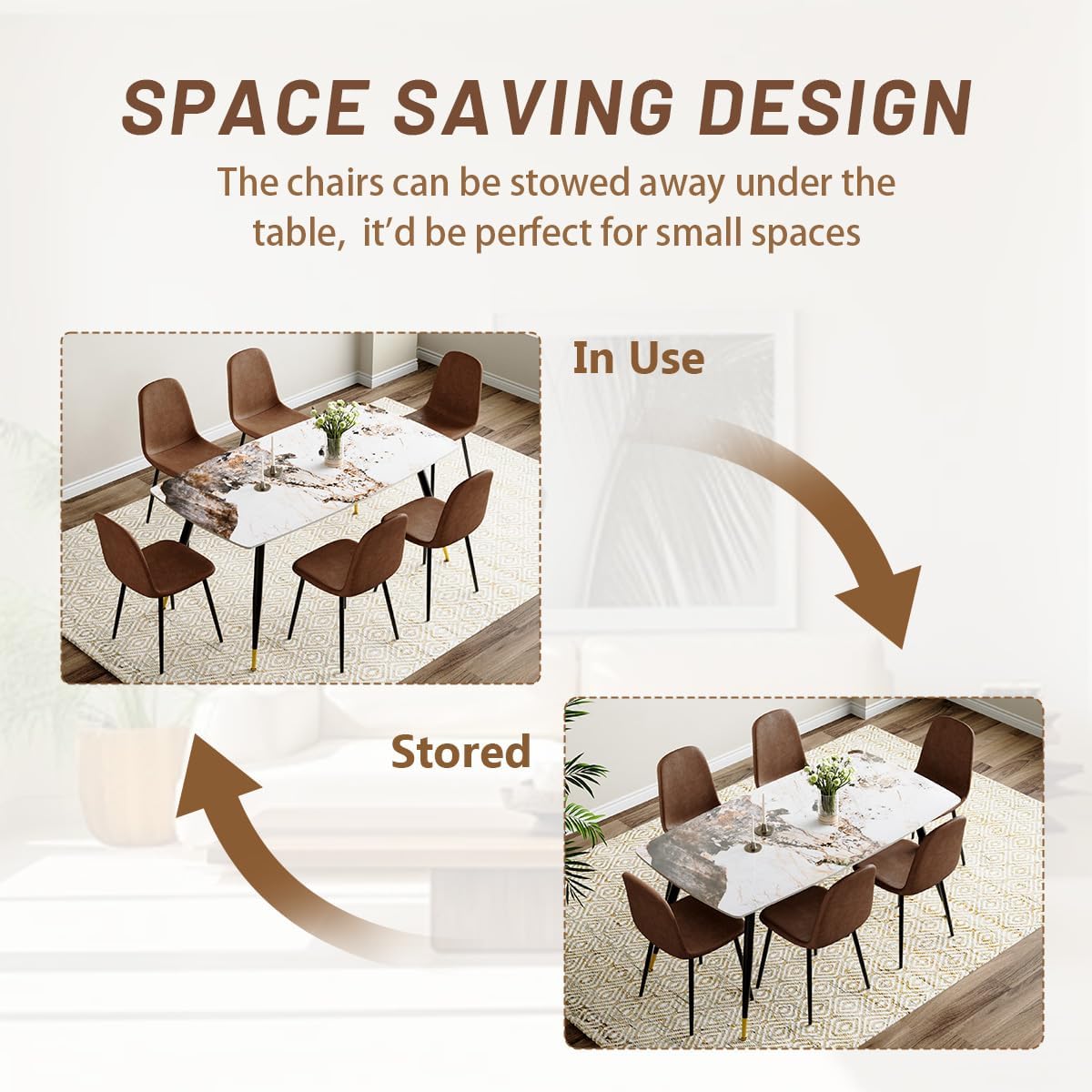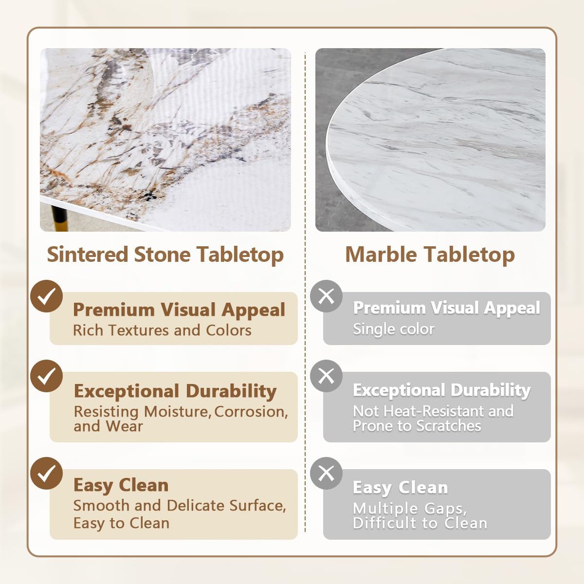 Easy to Clean and Maintain: Enjoy hassle-free upkeep with the sintered stone tabletop, requiring simple wiping for effortless cleaning, ensuring your dining area stays pristine.