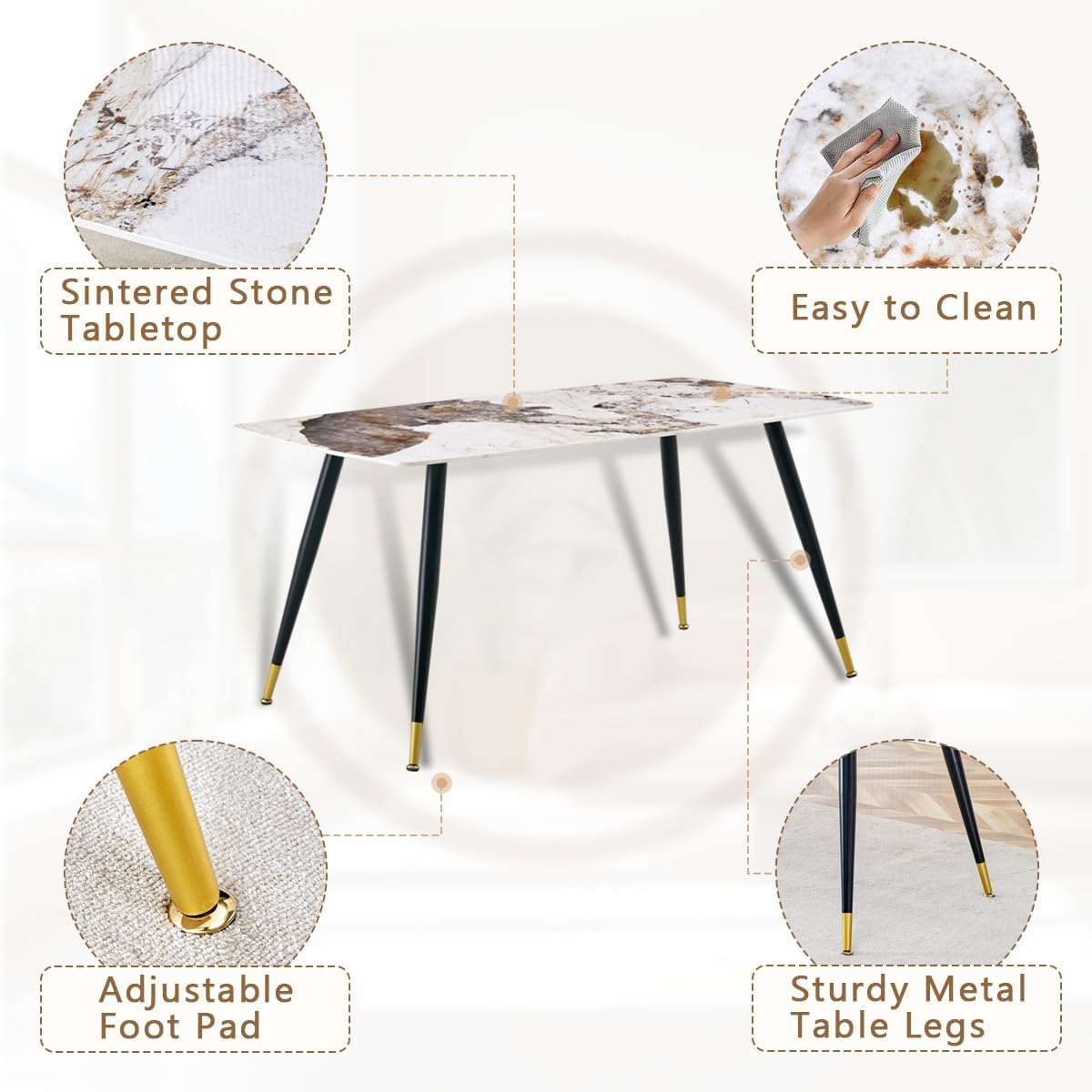 Easy to Clean and Maintain: Enjoy hassle-free upkeep with the sintered stone tabletop, requiring simple wiping for effortless cleaning, ensuring your dining area stays pristine.