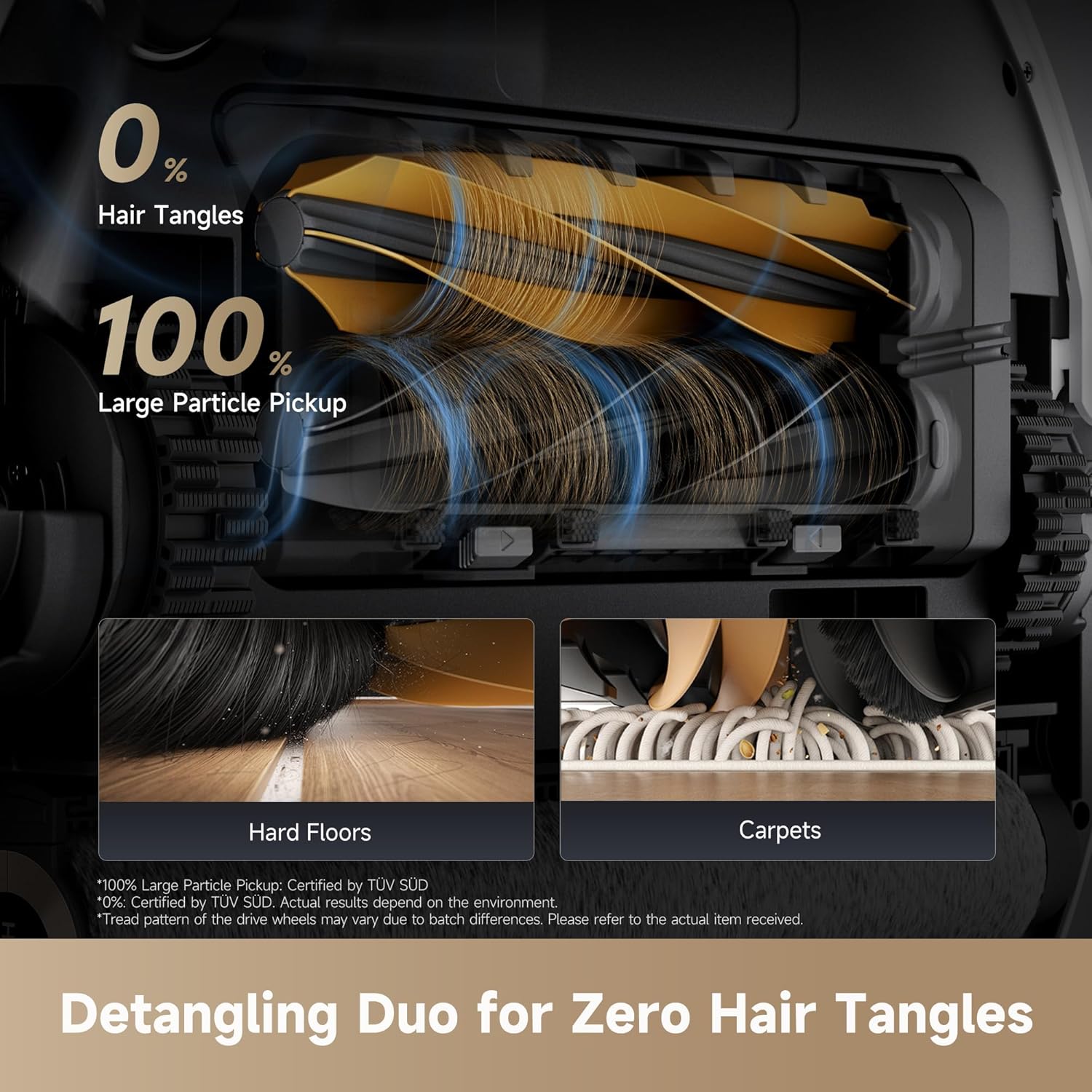 Debris? Hair Tangles? Not Over Here: Uses a powerful 30,000Pa suction force and special detangling DuoBrush, to easily pull up large particles and hair without the roller tangling.