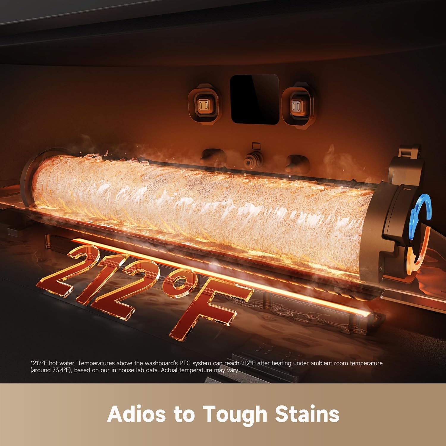 A Heated Self-Care Routine: The 212F ThermoHub roller self-cleaning system intelligently washes the roller mopall while you relax.