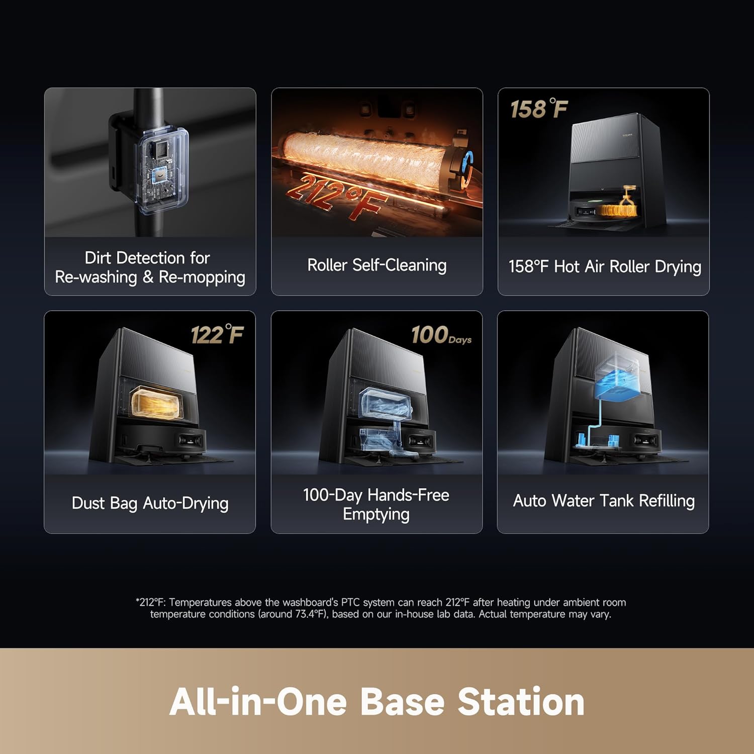 Leave the Dirty Work to the Dock: The all-in-one PowerDock auto-empties for up to 100 days, deep-cleans the roller at 212F, hot-air dries it, and even refills water and solution. Enjoy truly hands-free maintenance.