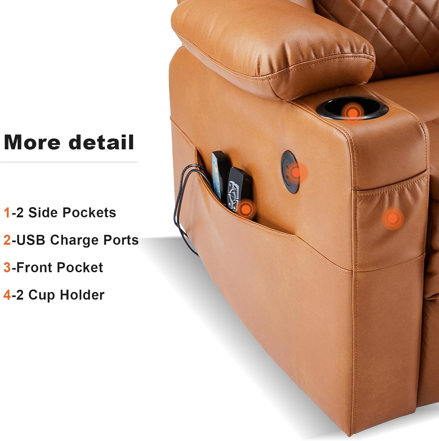 EASY ASSEMBLY & CONVENIENT FEATURES: Set up in just 10-15 minutes with no tools required. Includes USB charging ports, extend footrest, side pockets, and cup holders for added convenience. Perfect for relaxing while charging devices or storing essentials.