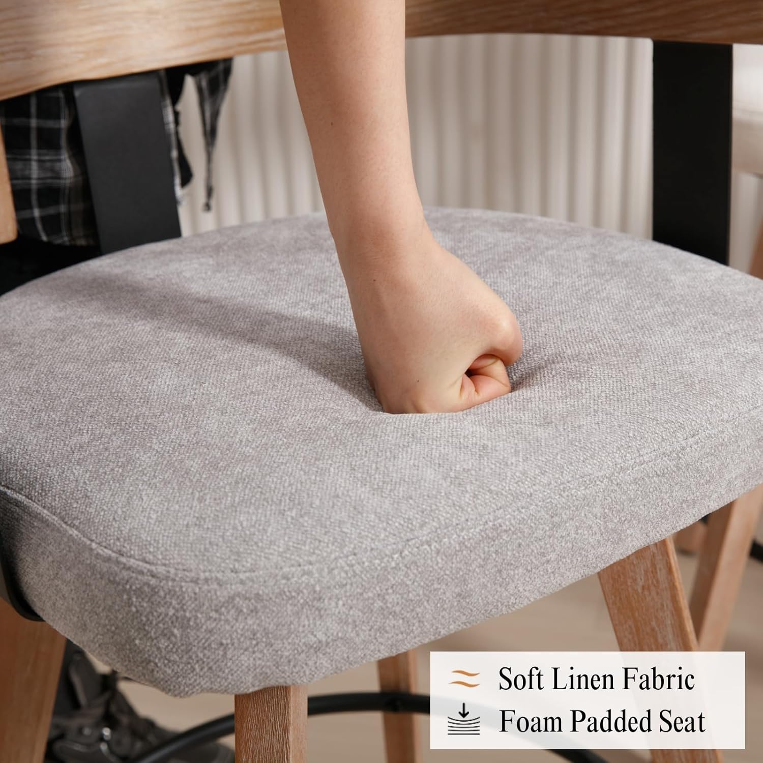 Comfortable and Sturdy: The seat is upholstered in soft grey linen fabric, providing a comfortable sitting experience. Made with a durable natural wood frame and black metal accents for long-lasting use