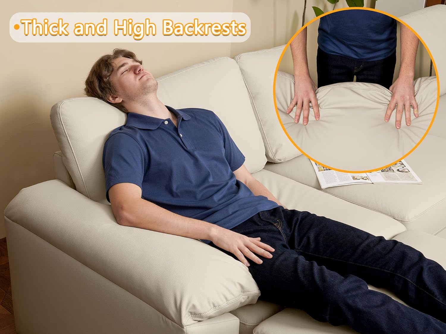 Pet Friendly Faux Leather Material: This faux leather material is not only waterproof, but also has the most important feature of scratch resistance.After testing, if the claws of cats and dogs are not very sharp and do not scratch repeatedly, there will be no damage to the material, which is also very suitable for families with pets. In addition,this modular sectional sofa is made of environmentally friendly material and is OEKO-TEX standard certified, which is free of harmful substances such as formaldehyde.