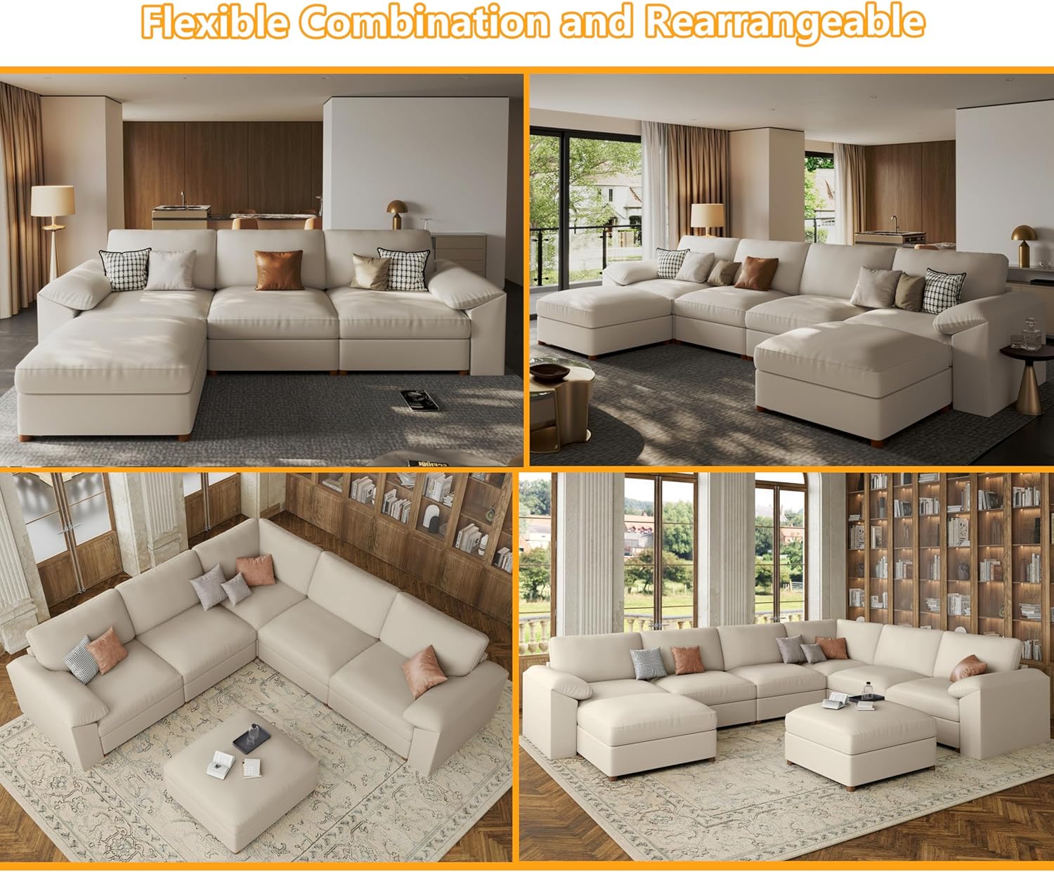 Easily Rearrange: Modular Sectional sofa allows you to create your perfect seating layout. The modular design is easy to rearrange, fitting your space and providing high flexibility. Suitable for small and spacious living rooms, it offers a customizable multi-functional seating solution to meet your needs. No tools required, assembly can be easily and quickly completed in just 30 minutes.