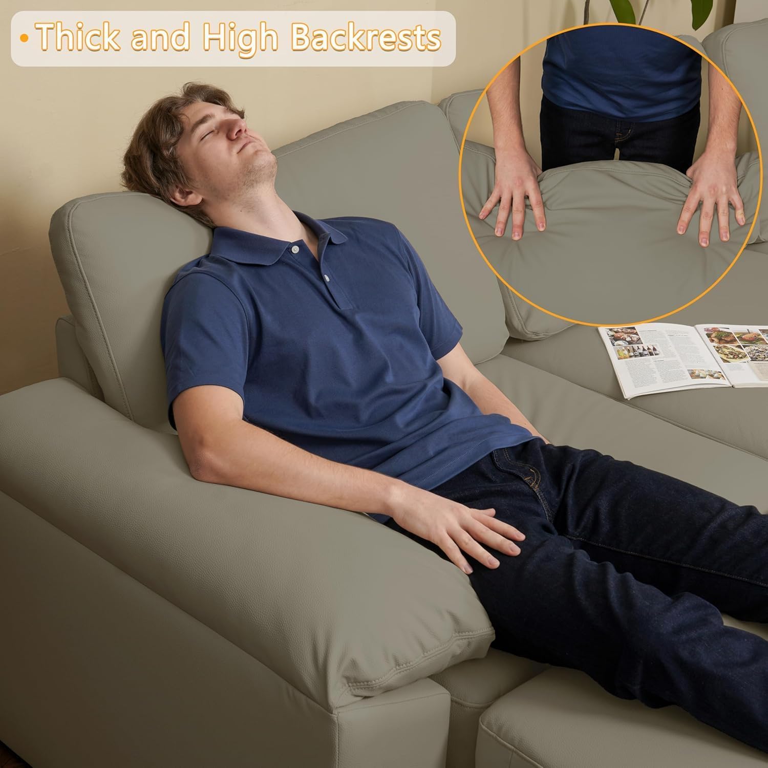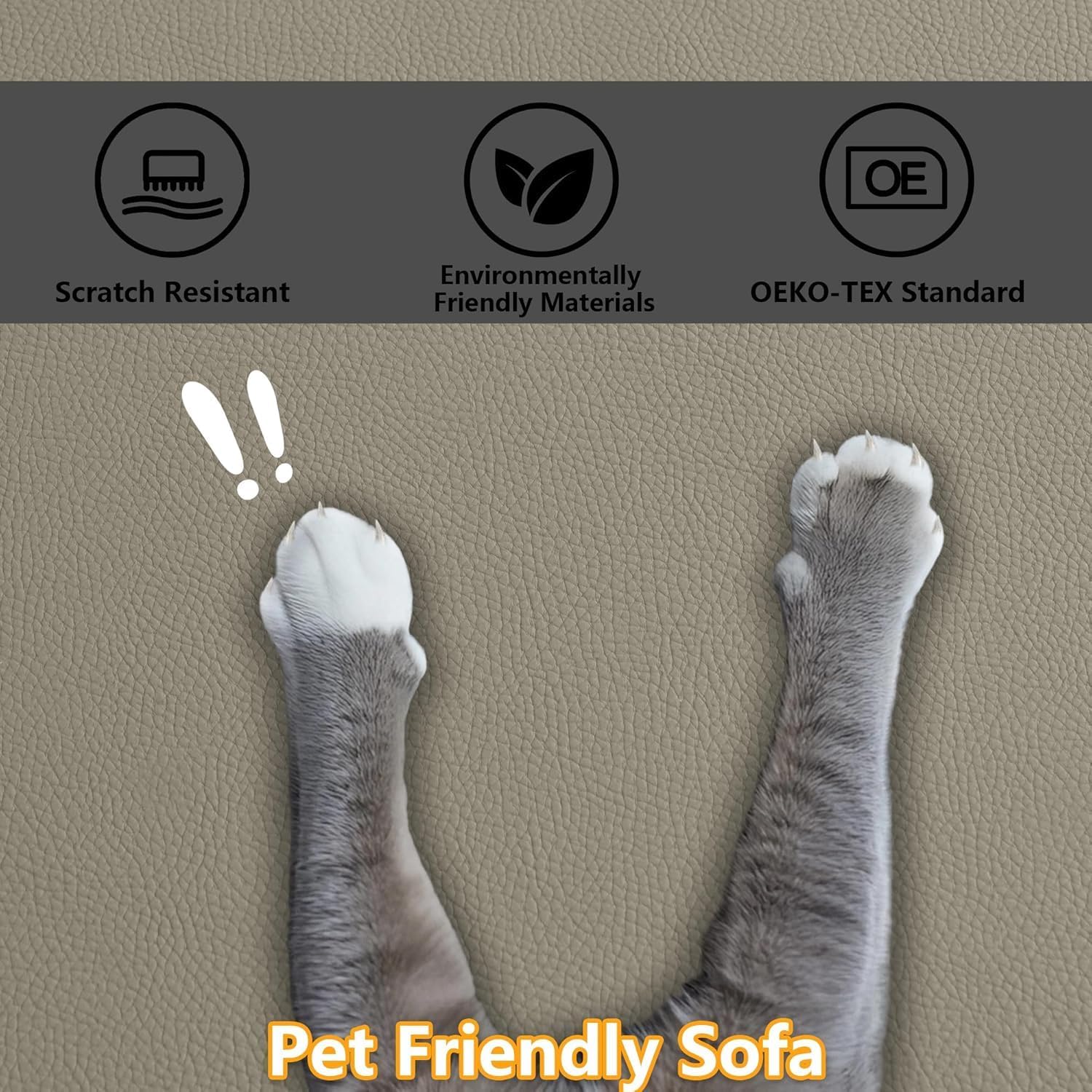 Pet Friendly Faux Leather Material: This faux leather material is not only waterproof, but also has the most important feature of scratch resistance.After testing, if the claws of cats and dogs are not very sharp and do not scratch repeatedly, there will be no damage to the material, which is also very suitable for families with pets. In addition,this modular sectional sofa is made of environmentally friendly material and is OEKO-TEX standard certified, which is free of harmful substances such as formaldehyde.