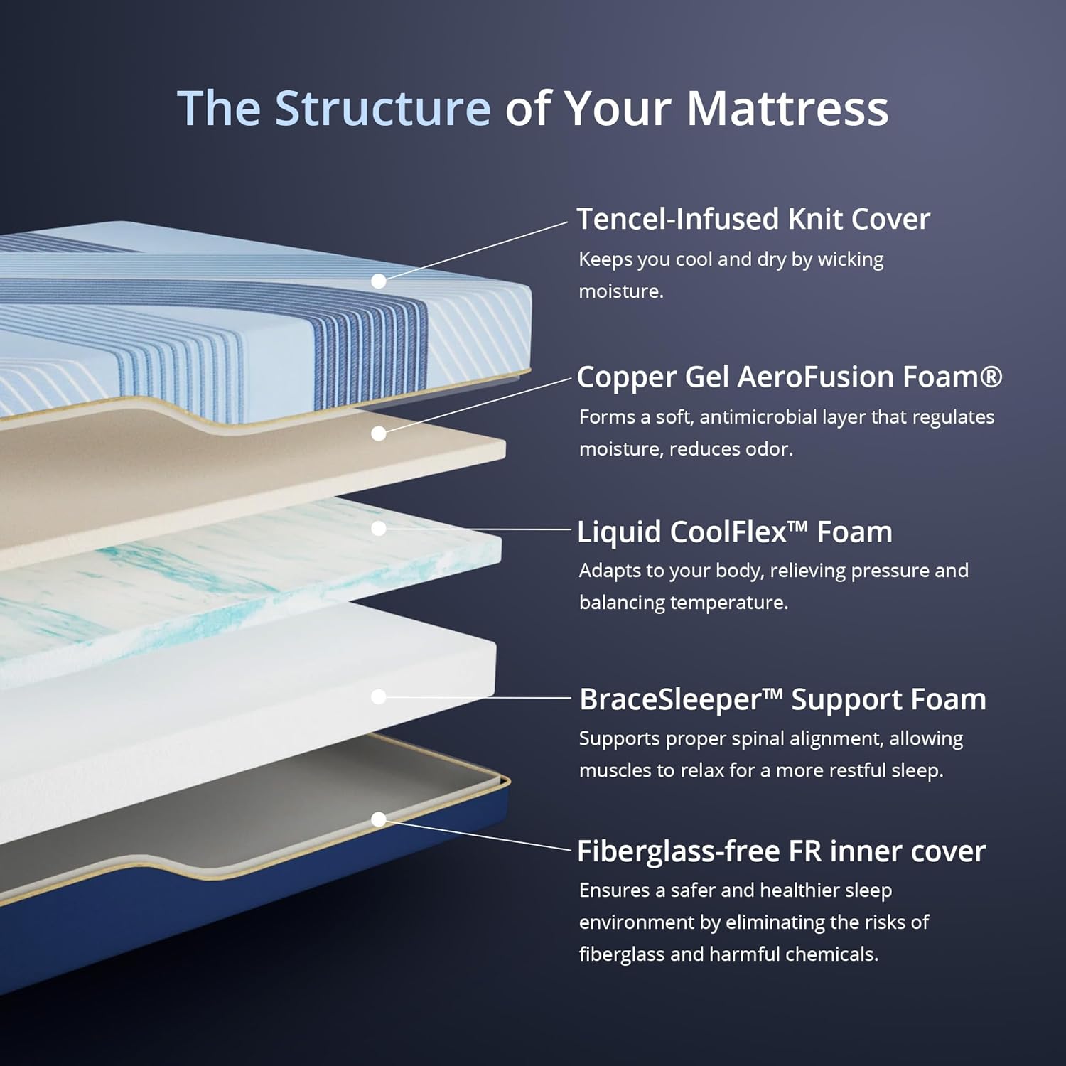 Cooler Sleep, Night After Night: Upgraded knit Tencel cover is silky-soft yet resistant to wear and wrinkles, so it stays pristine and plush for years. Tencel fabric and Copper Gel Memory Foam work together to draw heat away and wick moistureperfect for hot sleepers.