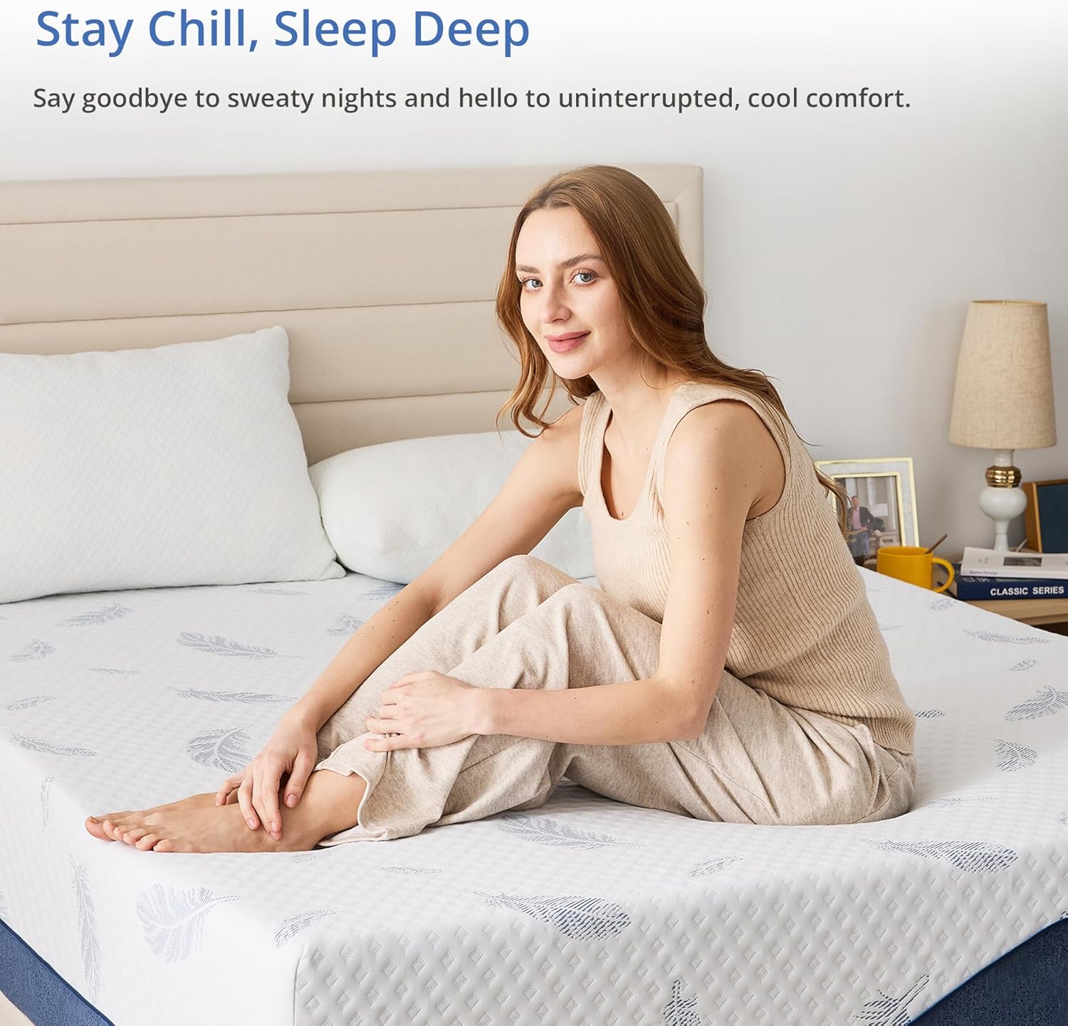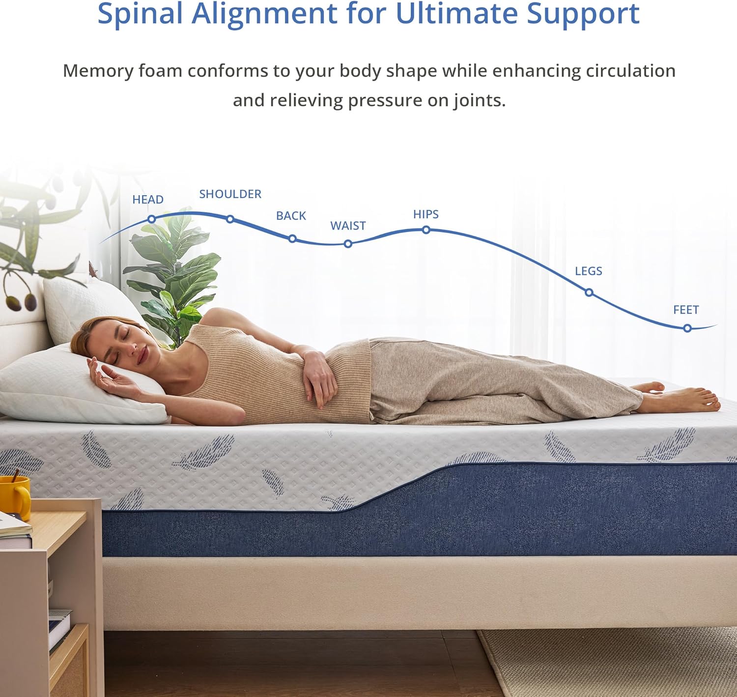 Comfortable Balanced Support: Engineered with layered gel memory foam and high-density support foam that adapts to your body, this queen size mattress provides targeted support for back, side, and stomach sleepers, helps relieve back pain, and minimizes partner disturbance.