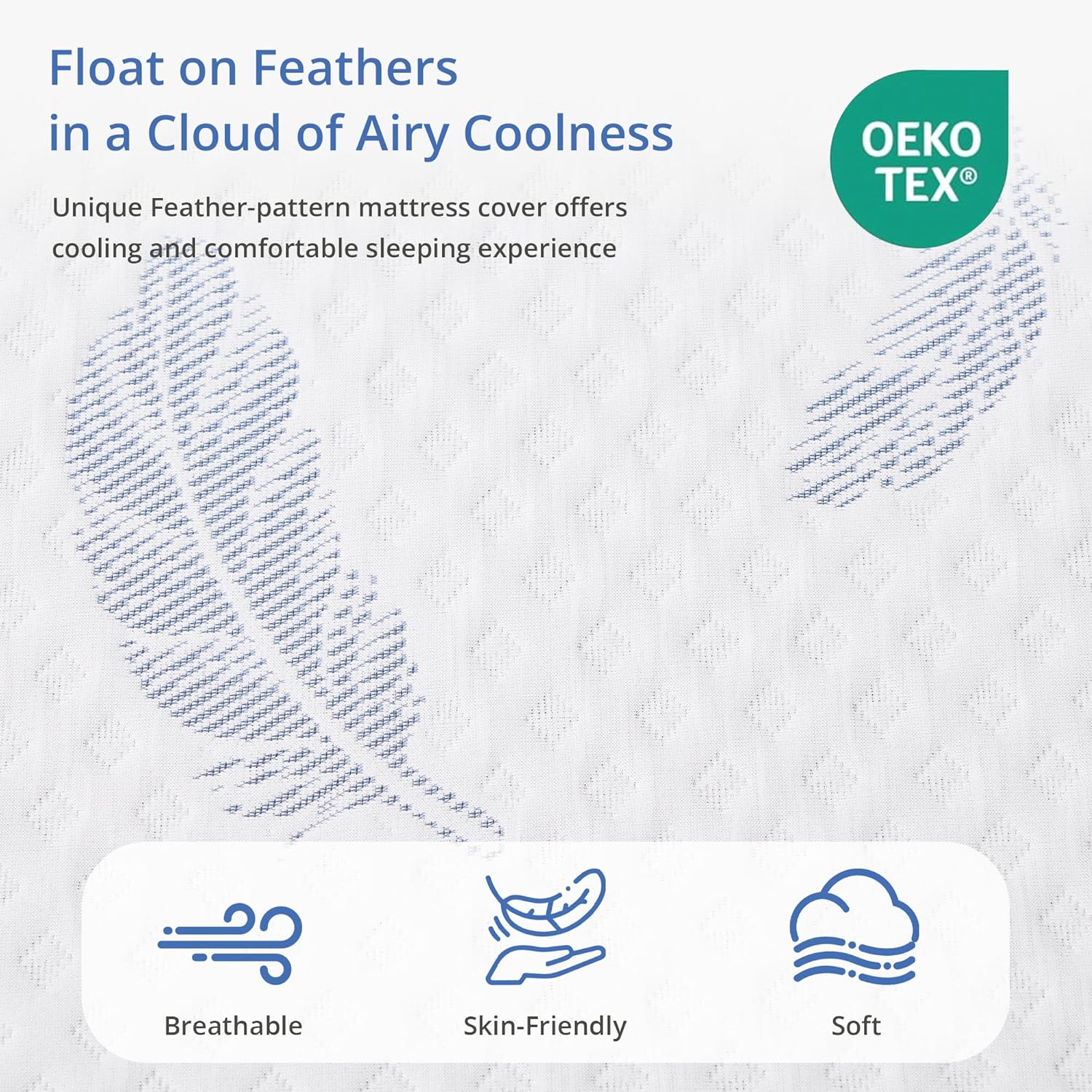 Thoughtful Elegant Design: Featuring a elegant feather-pattern design, the ultra-soft mattress cover is not only gentle on skin but also fully removable and machine washable for effortless care and lasting freshness.