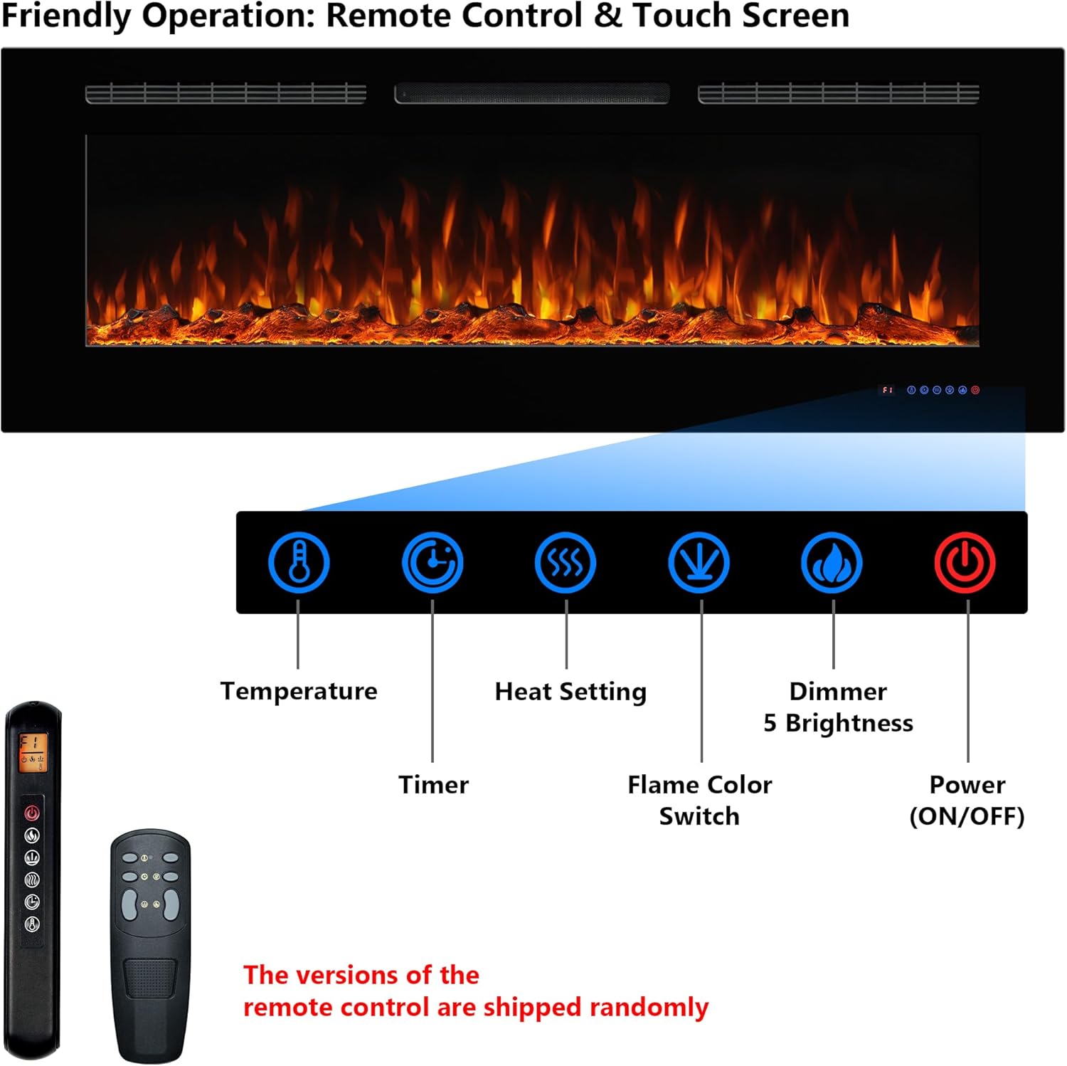 [Easy Installations and Operation]: Recessed and Wall-mounted optional. When recessed the fireplace in a wall, please confirm the insert size indicated in the picture. And this slim electric fireplace heater could operate with a remote and touchscreen panel, and this luxury model adds an LCD screen.