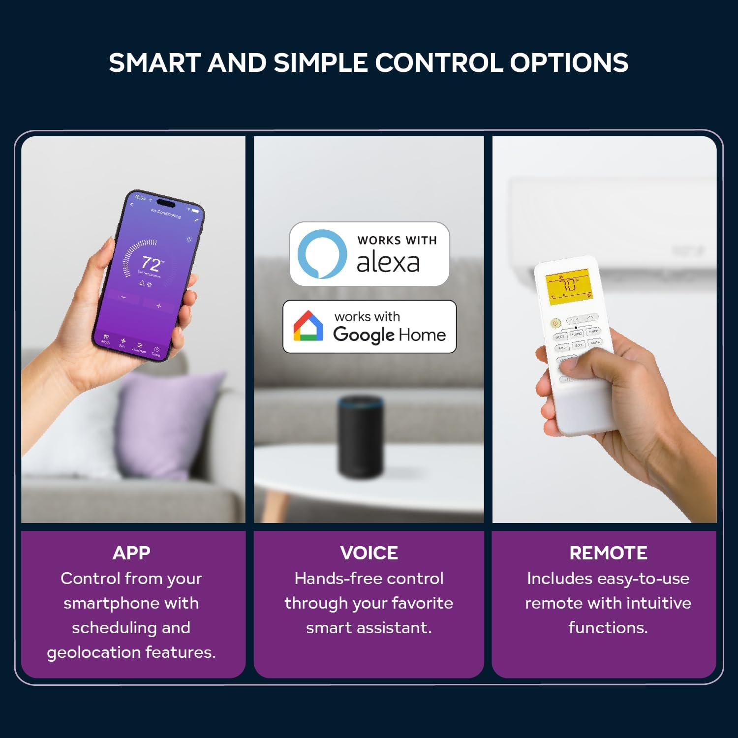 RELIABLE YEAR-ROUND COOLING & HEATING: Built for dependable performance in all seasons, this unit cools efficiently in the summer and delivers enhanced heating in the winter, even in subzero temperatures. Optimized for cold climates, it features inverter technology, auto defrost, and a smart pan heater to keep your home warm, comfortable, and running smoothly through harsh conditions. Backed by a 5-year warranty on parts and compressor.