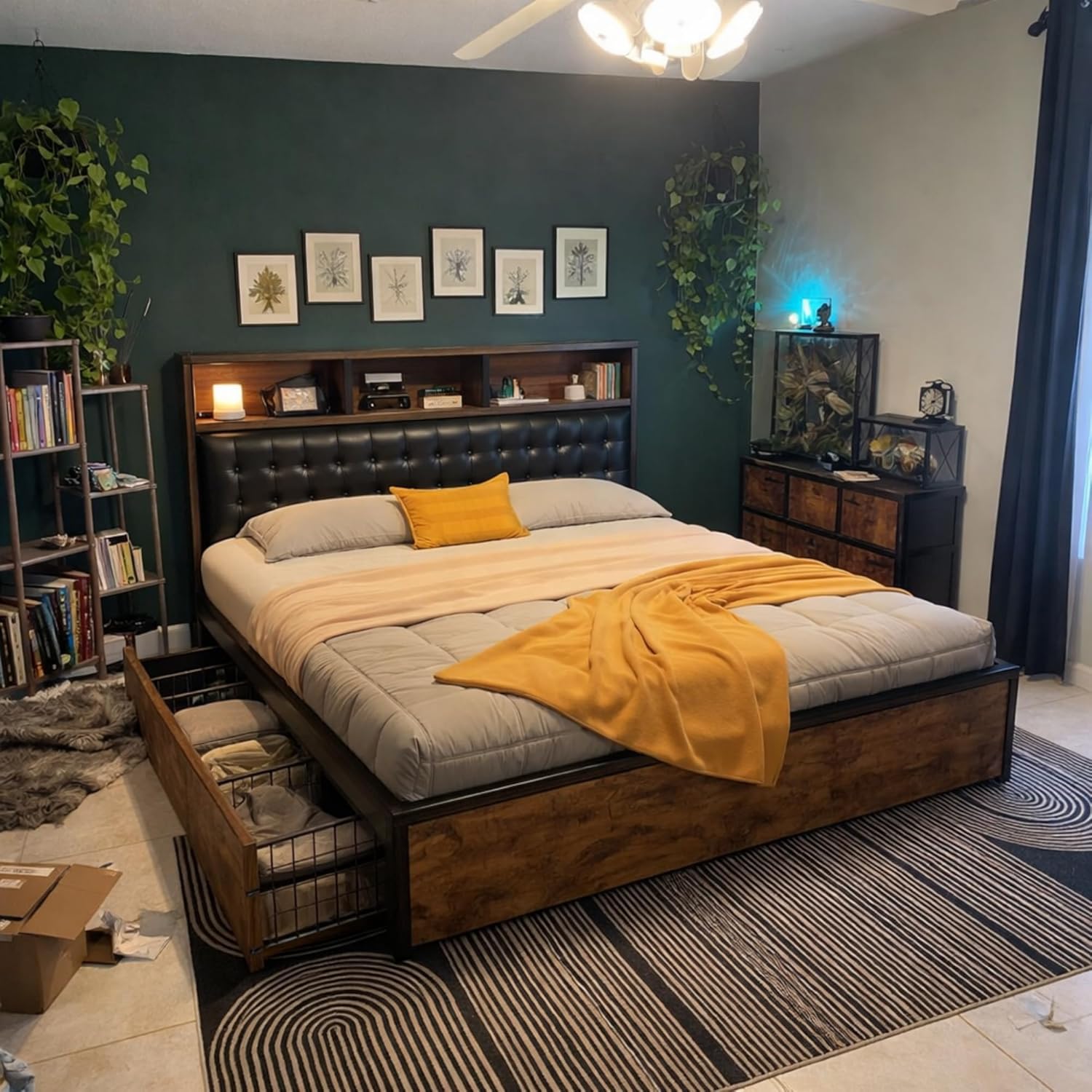 Smart Storage Meets Cozy Comfort: King Bed Frame