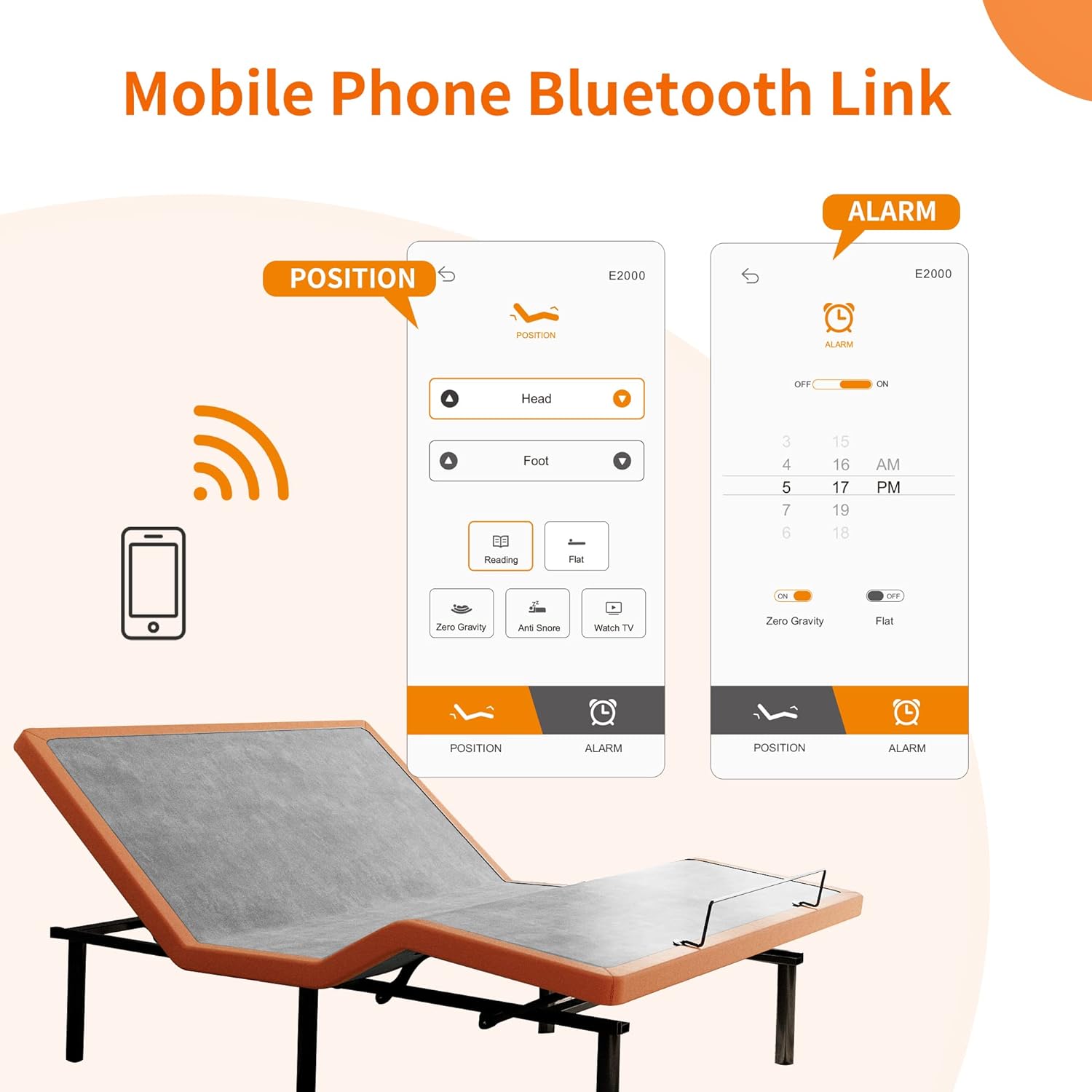 • Adjustable Bed Frame King - Ergonomic Electric Bed Base, Foot & Head Incline, APP Control, Wireless Remote, Zero Gravity, Anti-Snore, King, 2000 Series