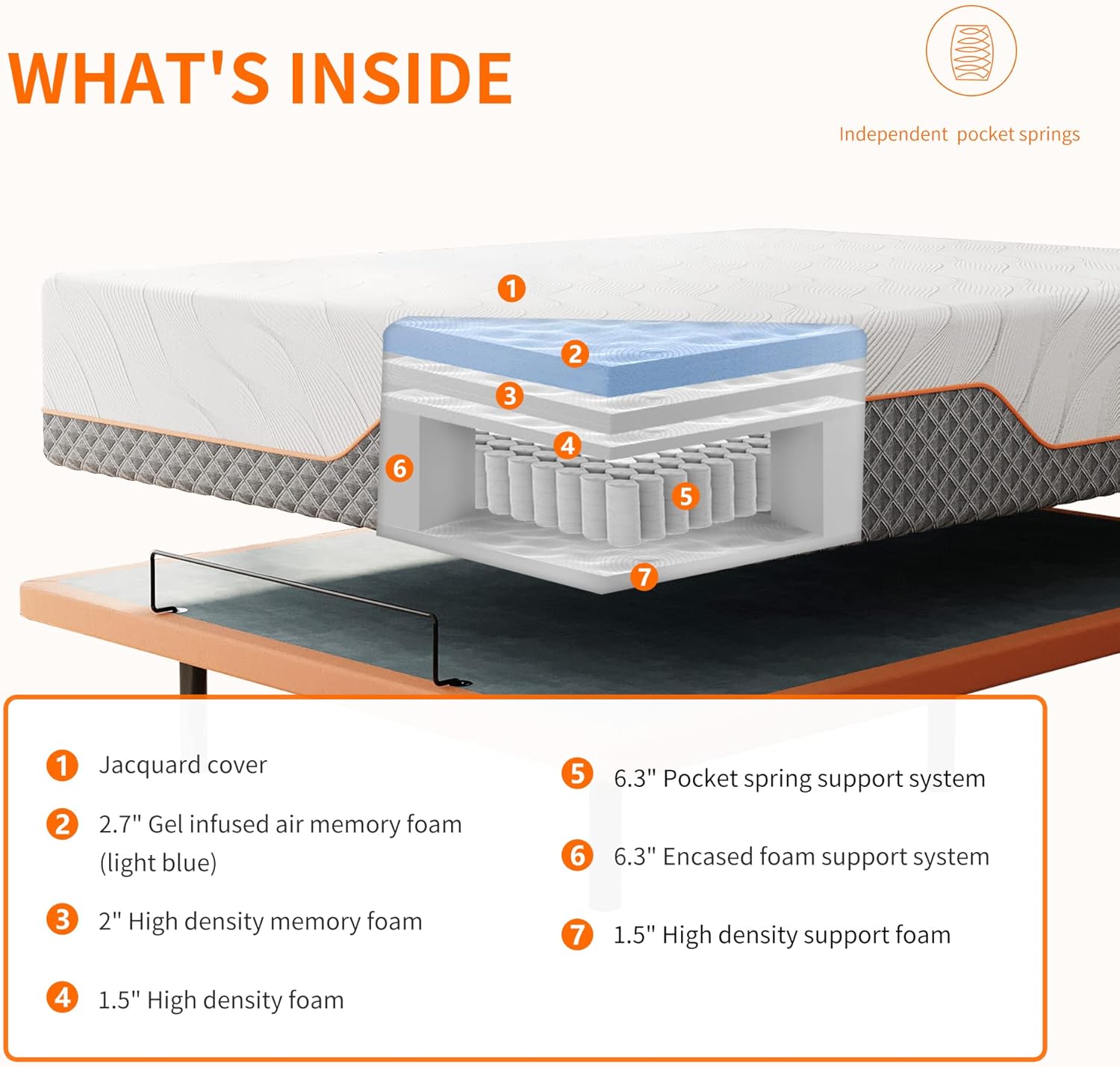 Ergonomic Design to Relieve Backache - Total Gel memory foam top fitted your body curve to keep you comfortable. Then a layer of comfortable foam to relieve the pressure point. Below is 3 layers of memory foam, high-density foam, and comfortable foam that provide additional contours and overall deep support adds extra contouring and support, which is beneficial for people with lower back pain. Neither too firm nor too soft, the just-right medium feel is perfect for all sleeping positions.